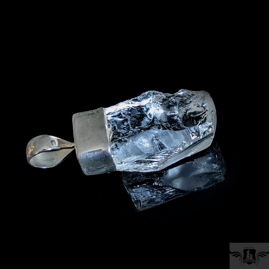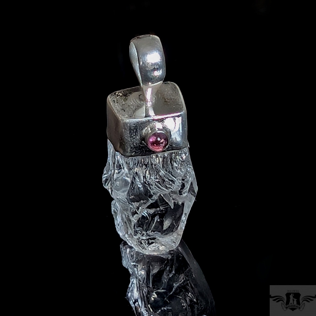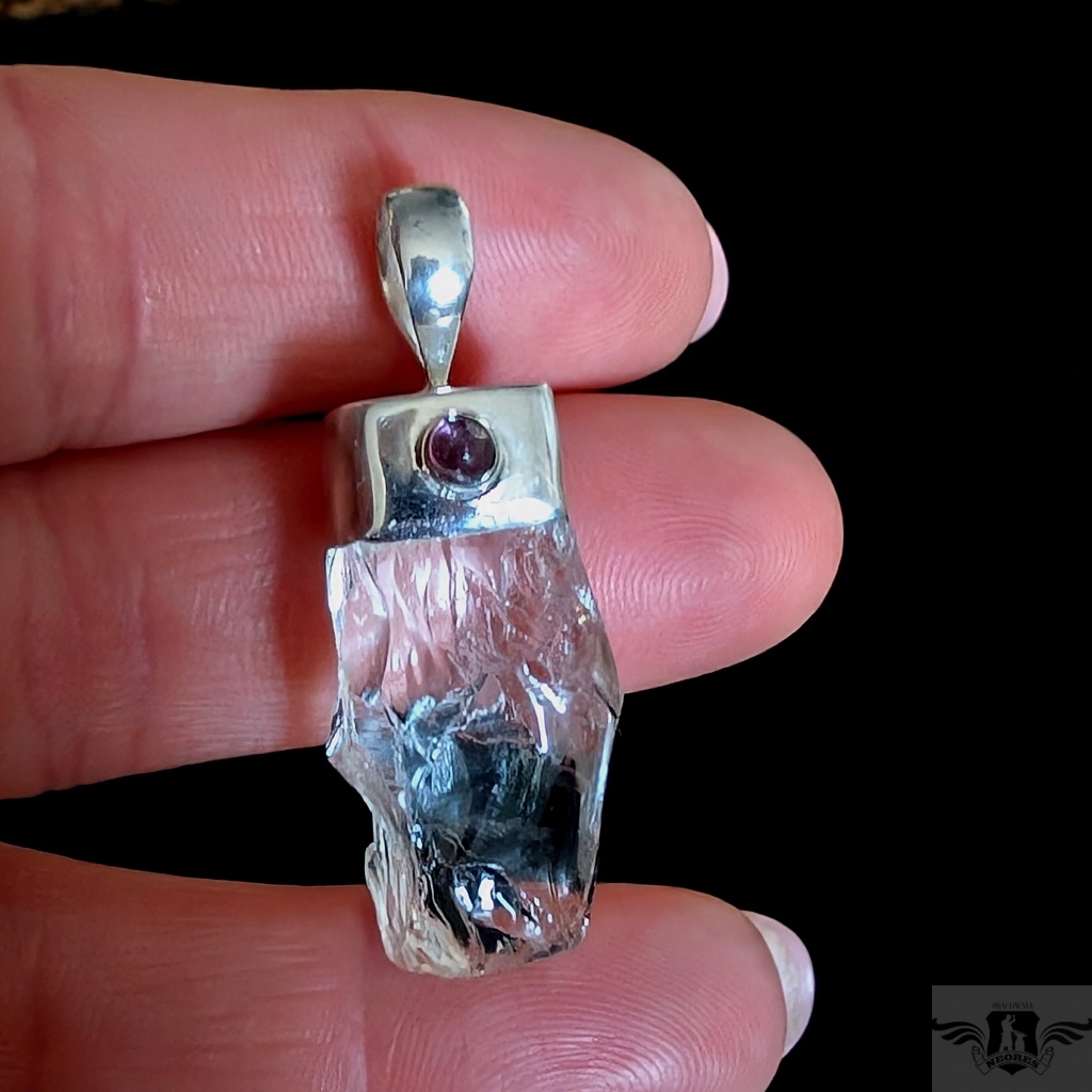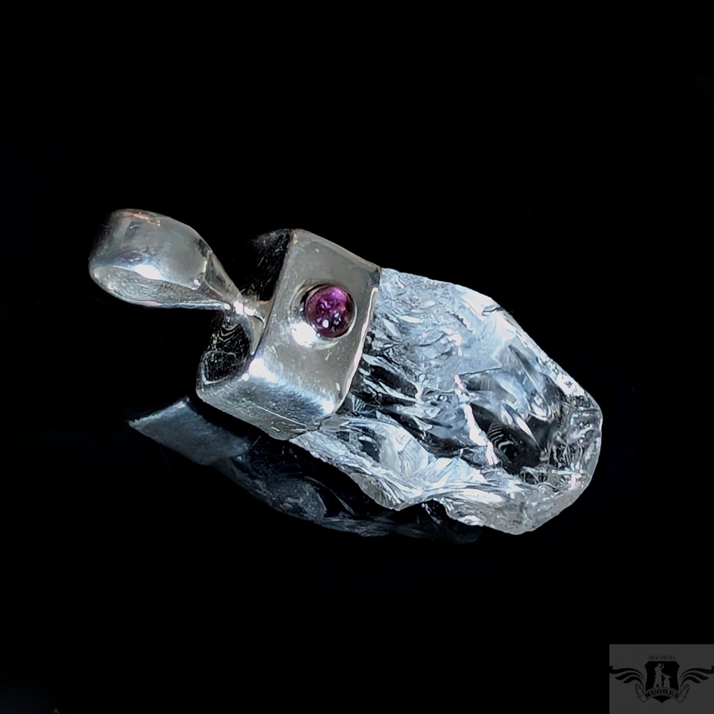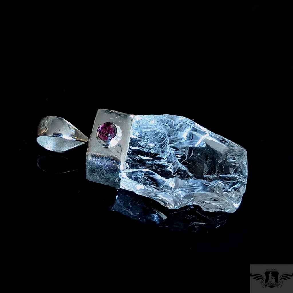 Oryginalny wisiorek wykonany ze srebra próby 925 oraz pięknego, surowego krystalu kwarcu o ultra czystości. Towarzyszy mu delikatny, różowy turmalin. Wymiary wisiorka max 40 x 16 mm. Waga 11 gramów. Wykonany przez dostawcę kamieni. Zawieszka zostanie zapakowana w ozdobne pudełeczko.