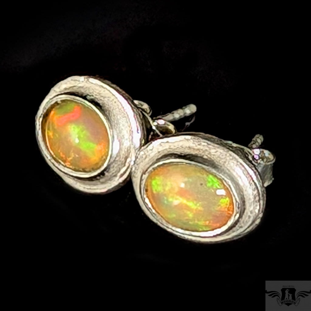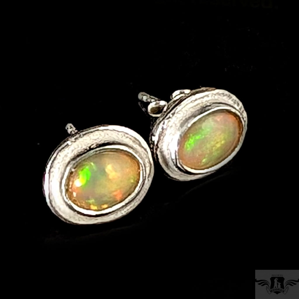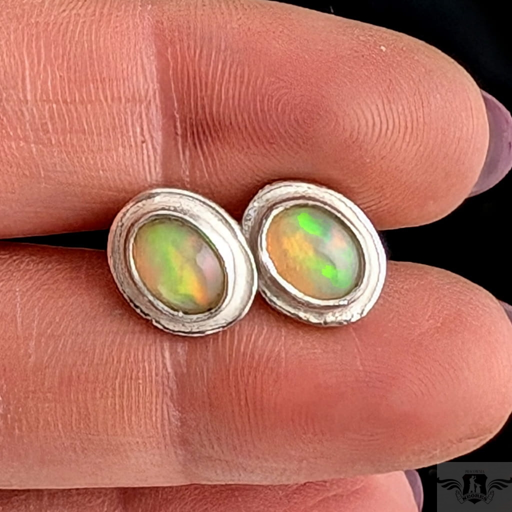Kolczyki wykonane ze srebra 925 oraz naturalnych opali szlachetnych z Etiopii. Kamienie zachwycają multikolorową opalizacją. Wymiary elementów oprawy kamienia 11 x 8 mm. Zapinane na sztyft. Leciutkie,waga jednego kolczyka 1,24 grama. Kolczyki zostaną zapakowane w ozdobne pudełeczko.