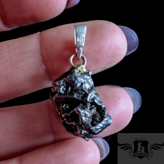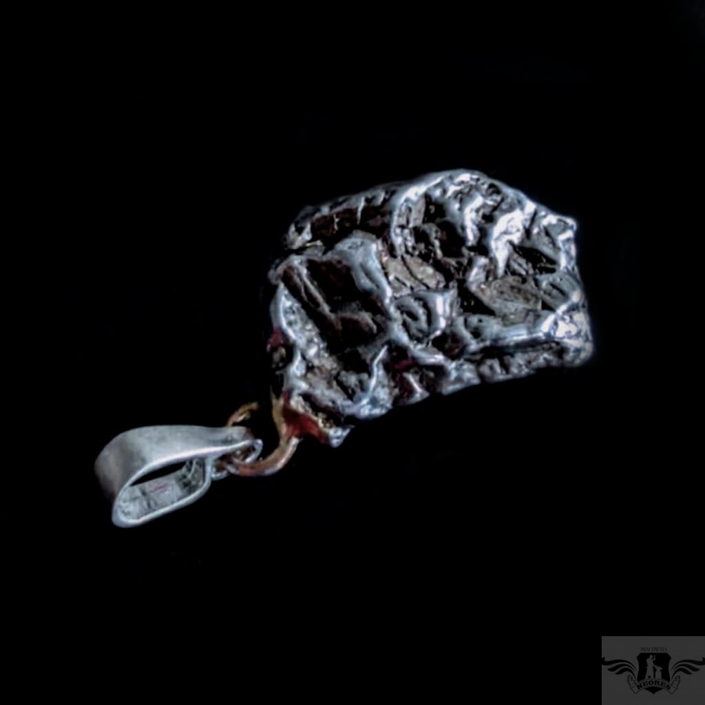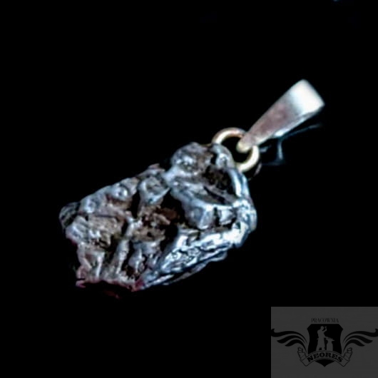 Wisiorek z meteorytem żelaznym Campo del Cielo, który znaleziono w 1576 roku w Argentynie. Krawatka srebro 925 Uniwersalny, dla niego lub dla niej. Wymiary 20 x 13 mm. Długość max 31 mm. Waga wisiora 8g. Do meteorytu dołączona zostanie metryka z datą, miejscem spadku i wagą. Wisiorek zostanie zapakowany w ozdobne pudełeczko.