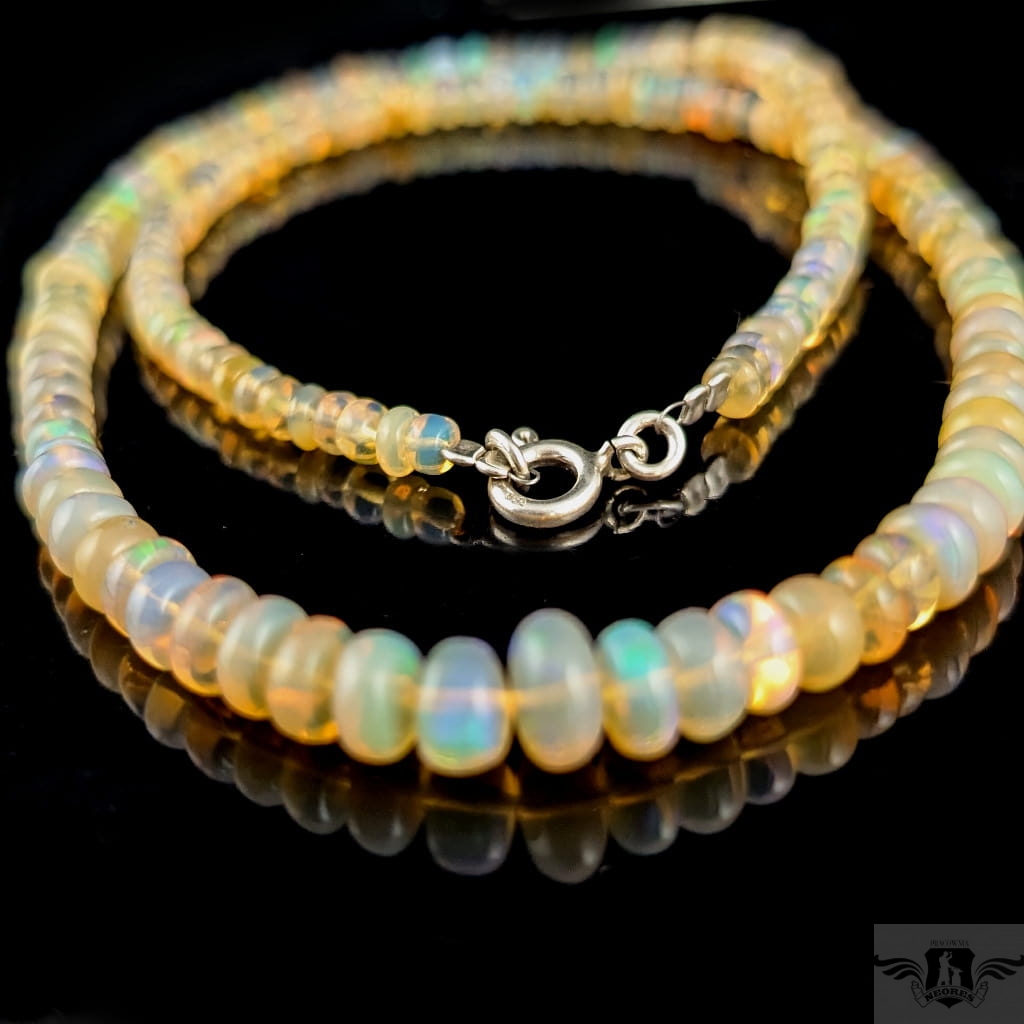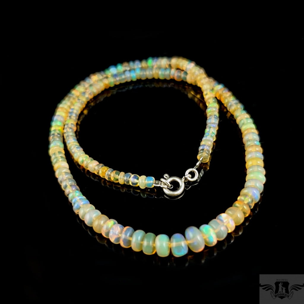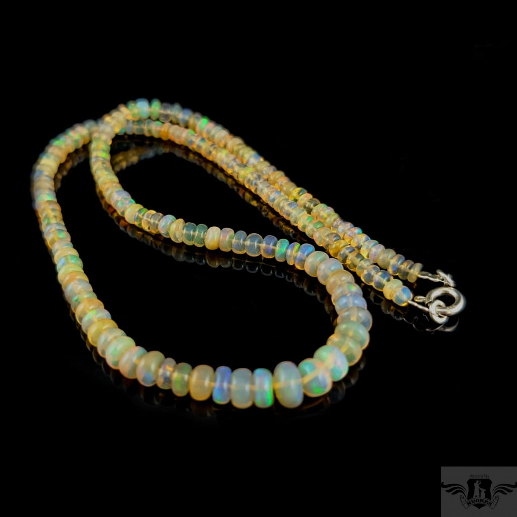 Naszyjnik z przepięknych, starannie wyselekcjonowanych, wystopniowanych opali etiopskich. Kamienie pięknie połyskują, wspaniałą opalizacją. Zapięcie srebro 925. Grubość 7-3 mm, długość naszyjnika 44 cm. Mogę dołączyć przedłużkę w postaci srebrnego łańcuszka. Naszyjniki robimy sami. Zapakowany w ozdobne pudełeczko.