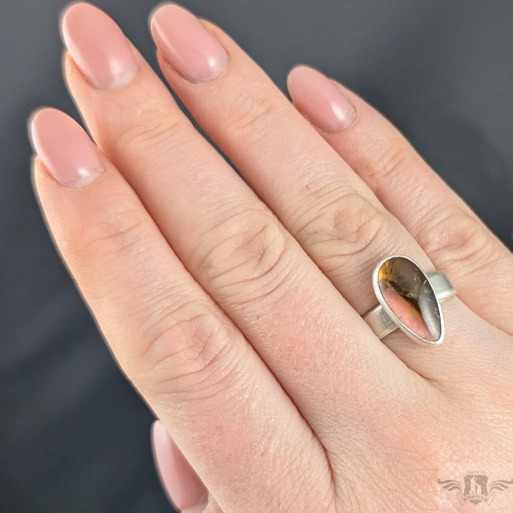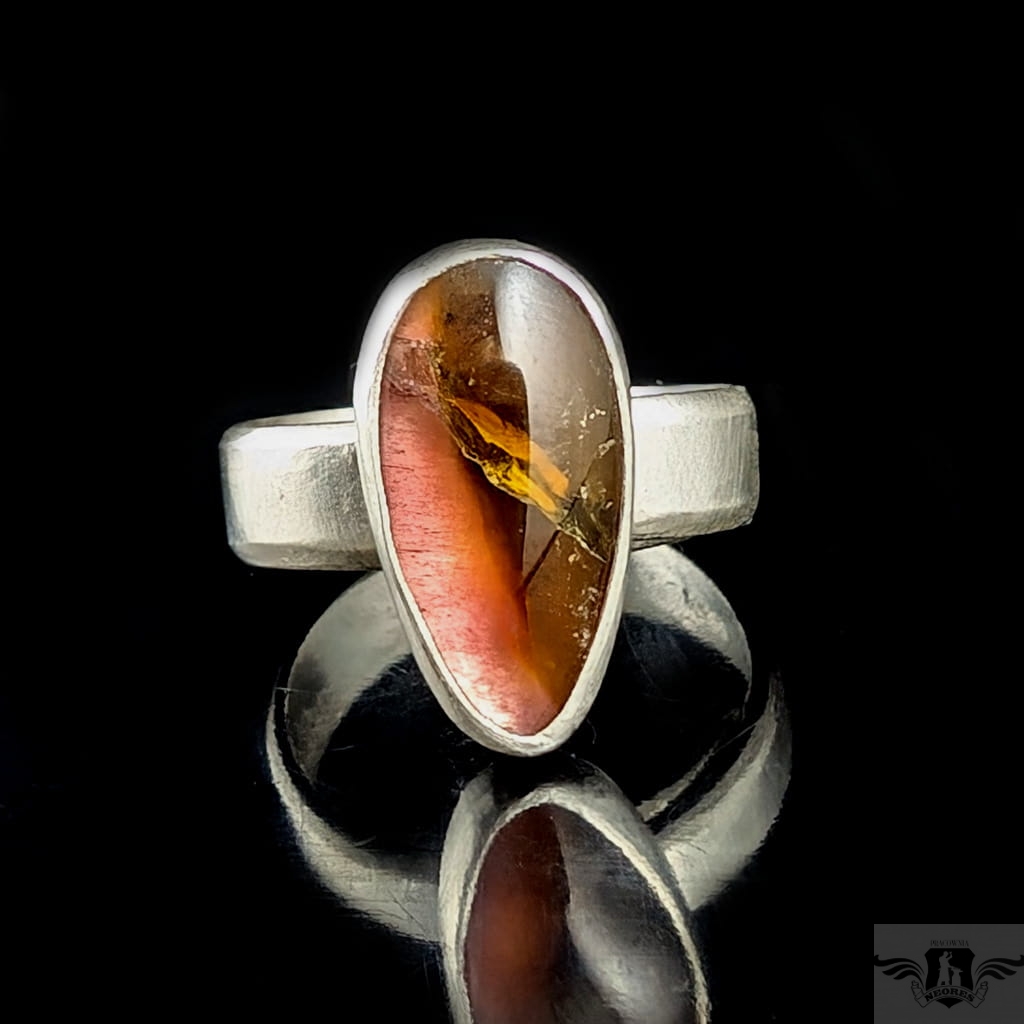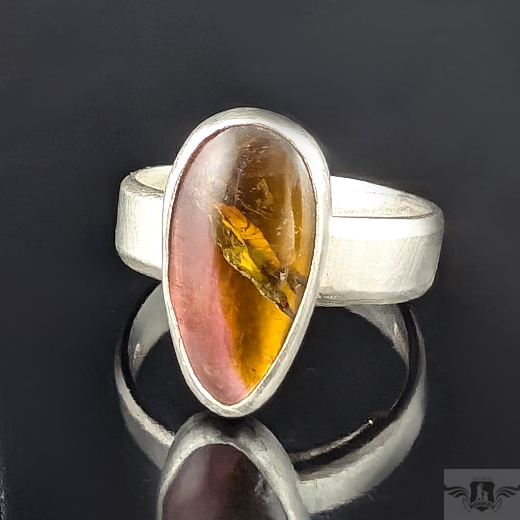 Pierścień wykonany ze srebra próby 925 oraz naturalnego turmalinu arbuzowego. Oprawa 17 x 9 mm.Waga 5 g. Dziewczęcy, subtelny, oryginalny. Rozmiar jubilerski regulowany, po zakupie dopasuję, proszę napisać na jaki. Pierścionek zostanie zapakowany w ozdobne pudełeczko.