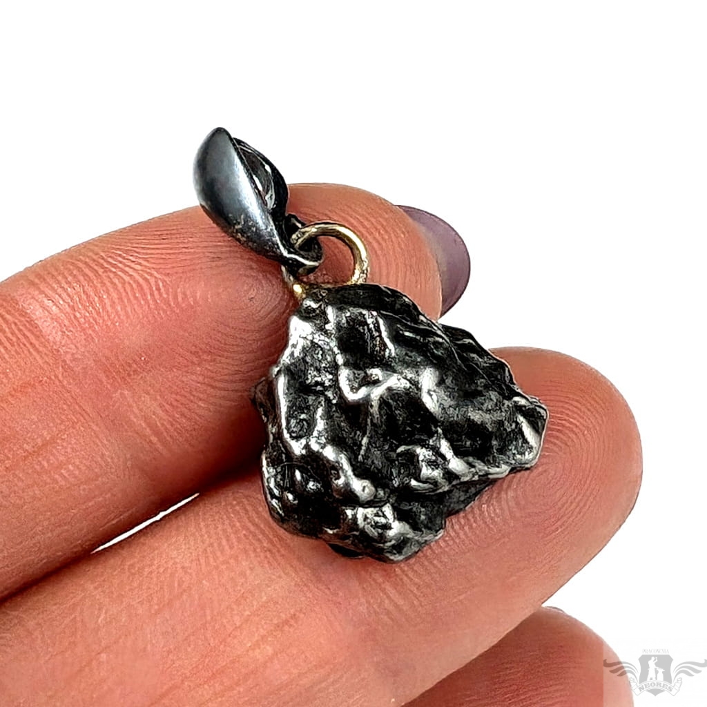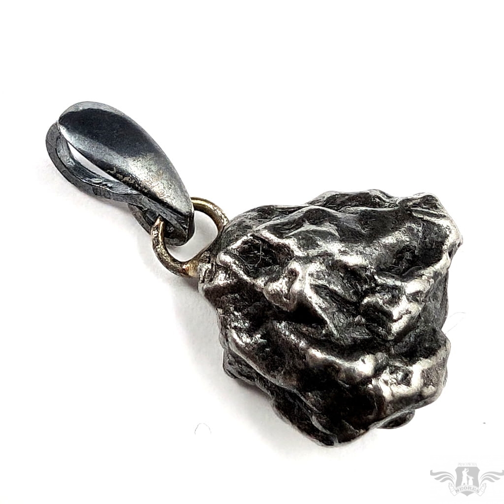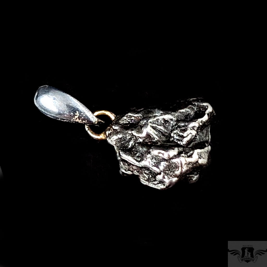 Wyjątkowy wisior z meteorytem żelaznym Campo del Cielo, który znaleziono w 1576 roku w Argentynie. Meteorytom przypisywane są magiczne właściwości talizmanów. Z pewnością jest to niebanalny materiał jubilerski w ciekawy sposób zakomponowany w srebro.Uniwersalny,dla niego lub dla niej. Do meteorytu dołączona jest jego metryka. Wymiaty 18 x 16 mm, z krawatką z oksydowanego srebra długosć 28 mm, Waga wisiora 6,7 g. Wisior zostanie zapakowany w ozdobne pudełeczko.