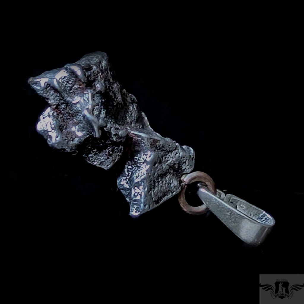 Wisiorek z meteorytem żelaznym Campo del Cielo, który znaleziono w 1576 roku w Argentynie. Krawatka srebro 925. Uniwersalny, dla niego lub dla niej. Wymiary 20 x 12 mm. Długość max 32 mm. Waga wisiora 5,26 g. Do meteorytu dołączona zostanie metryka z datą, miejscem spadku i wagą. Wisiorek zostanie zapakowany w ozdobne pudełeczko.