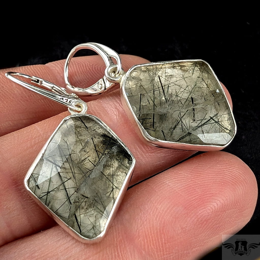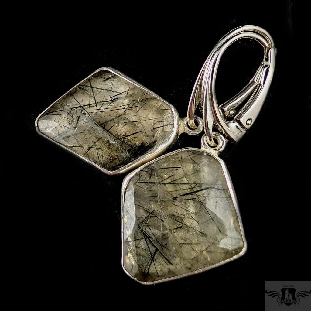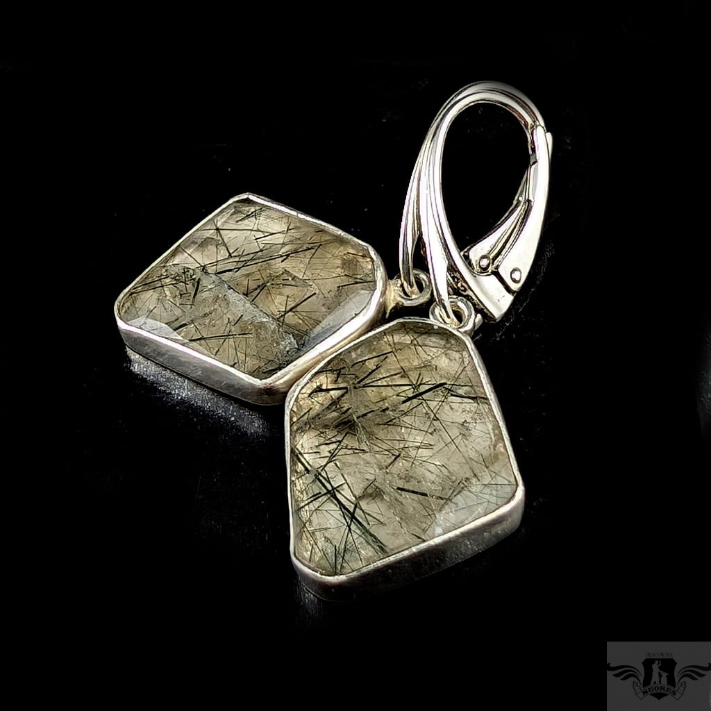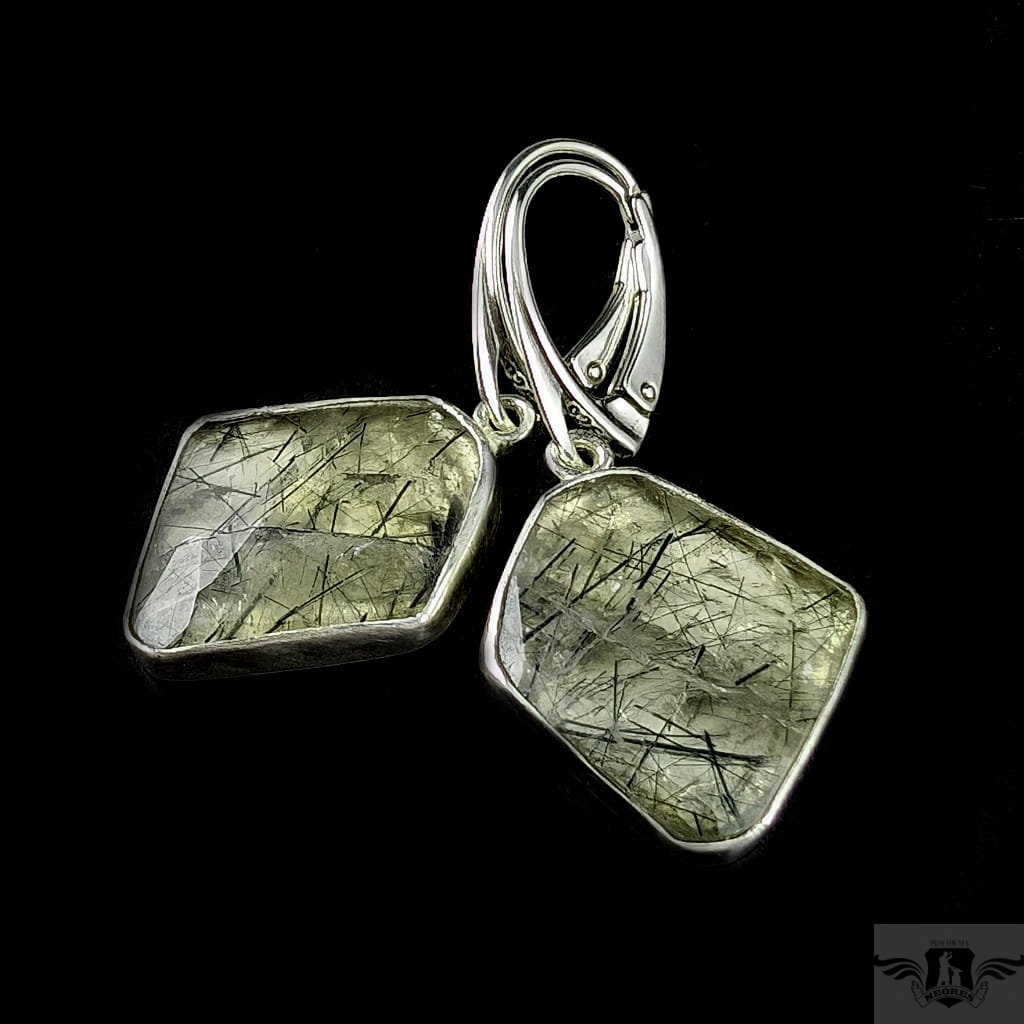 Eteryczne kolczyki wykonane własnoręcznie ze srebra próby 925 oraz naturalnego kwarcu z inkluzjami zielonego chlorytu. Oprawa 21 x 18 mm. Waga jednego kolczyka 3,8 g. Długość z biglami 40 mm. Polecam, kamienie w pięknym szlifie, kolczyki zostaną zapakowane w ozdobne pudełeczko.