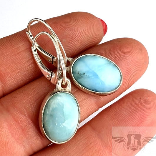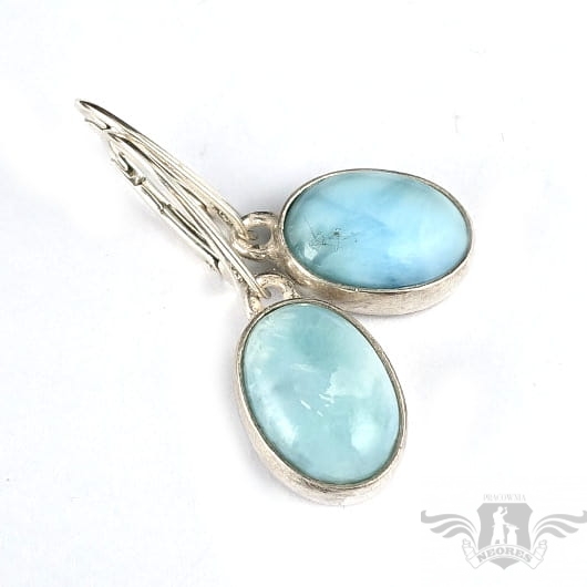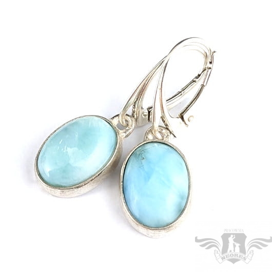 Kolczyki z naturalnymi larimarami oprawionymi w srebro próby 925. Wymiary całej oprawy 15 x 11 mm. Długość z biglami 33 mm. Waga jednego 3,5 g. Zostaną zapakowane w ozdobne pudełeczko.