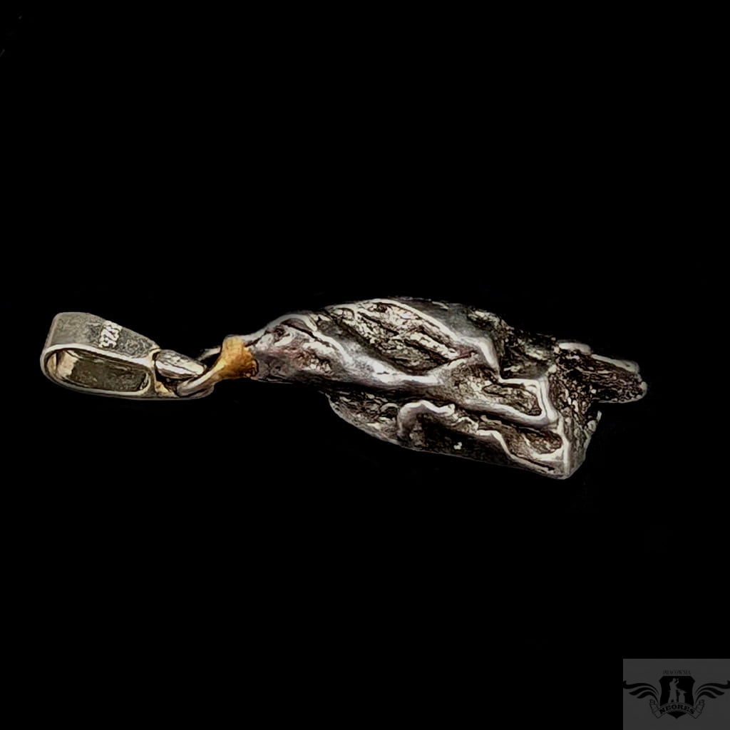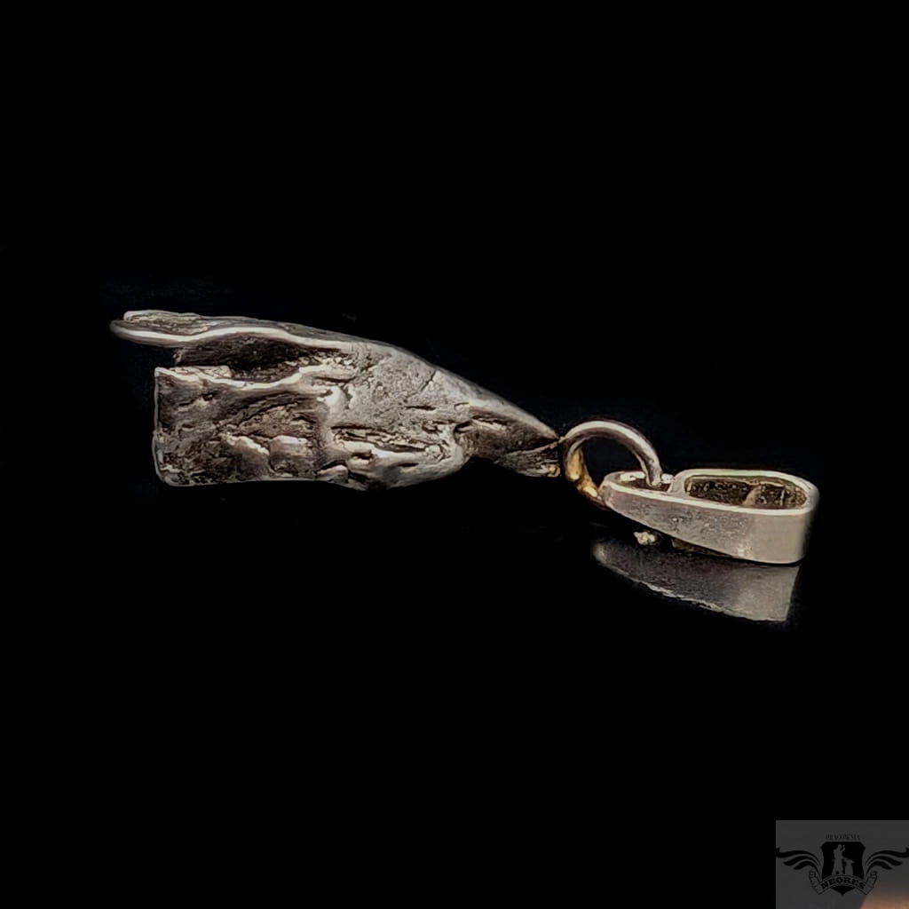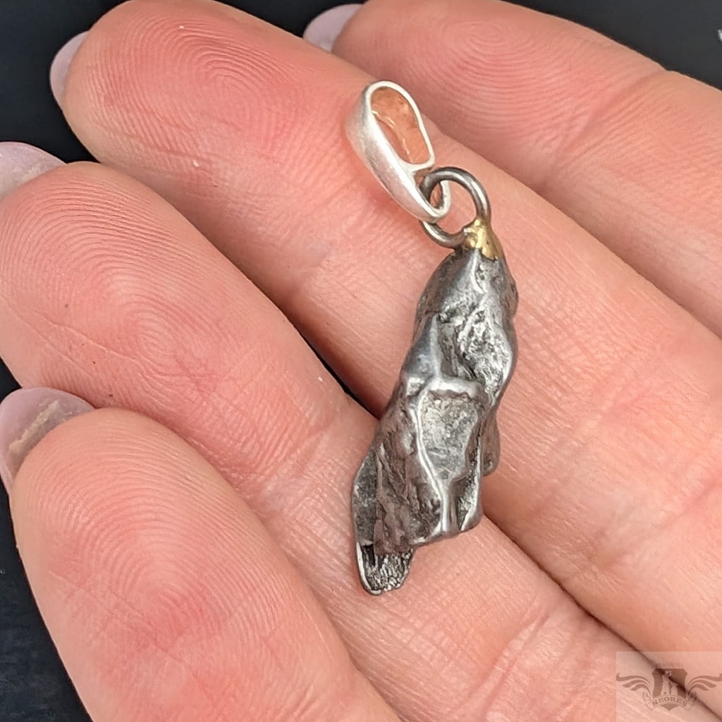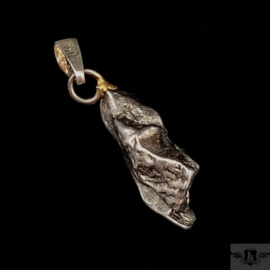 Wisiorek z meteorytem żelaznym Campo del Cielo, który znaleziono w 1576 roku w Argentynie. Krawatka srebro 925, oksydowane. Uniwersalny, dla niego lub dla niej. Wymiary 21 x 7 mm. Długość max 30 mm. Waga wisiora 4,4 g. Do meteorytu dołączona zostanie metryka z datą, miejscem spadku i wagą. Wisiorek zostanie zapakowany w ozdobne pudełeczko.