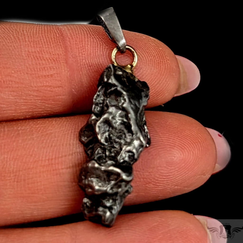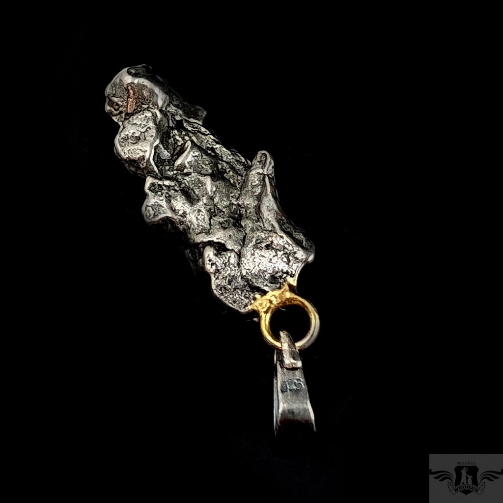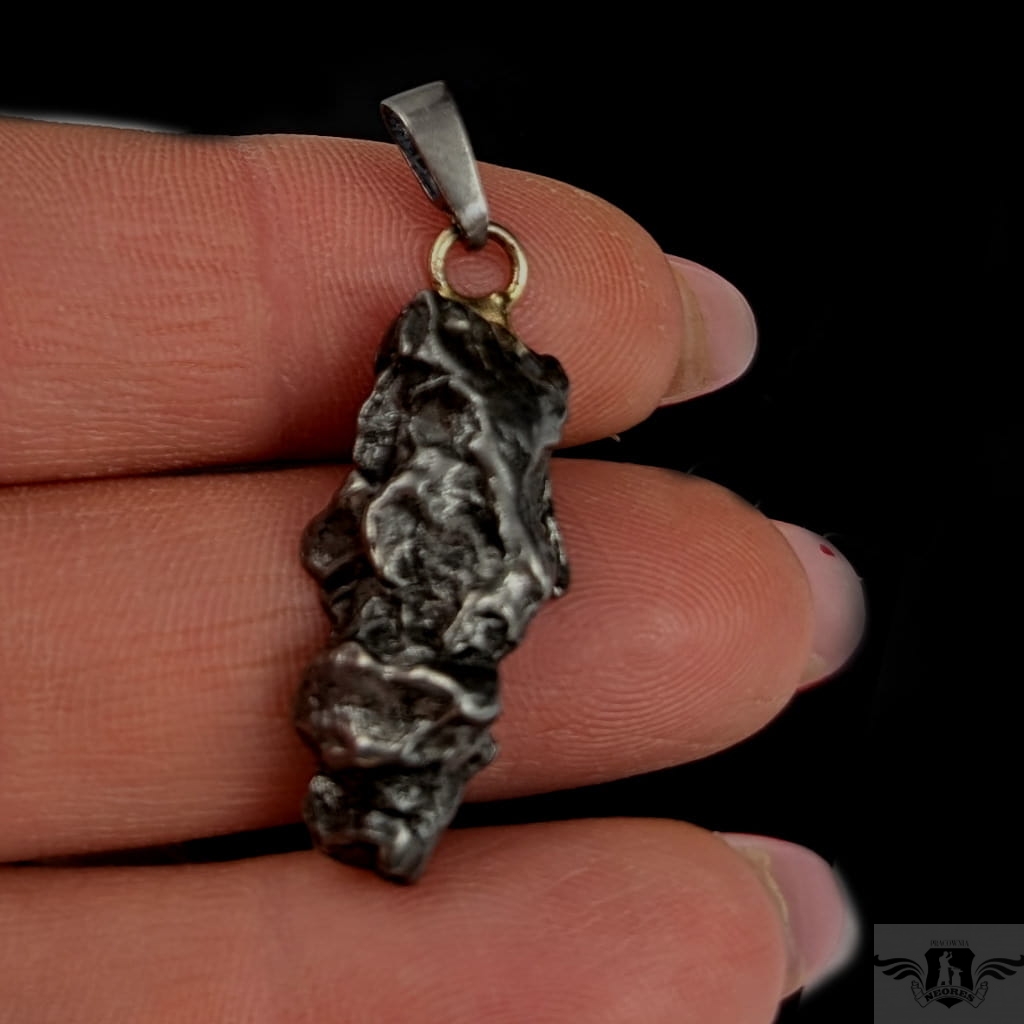 Wisior z okazałym meteorytem żelaznym Campo del Cielo, który znaleziono w 1576 roku w Argentynie. Krawatka srebro 925, oksydowane. Uniwersalny, dla niego lub dla niej. Wymiary 27 x 13 mm. Długość max 37 mm. Waga wisiora 6,9 g. Do meteorytu dołączona zostanie metryka z datą, miejscem spadku i wagą. Wisiorek zostanie zapakowany w ozdobne pudełeczko.