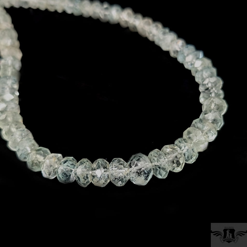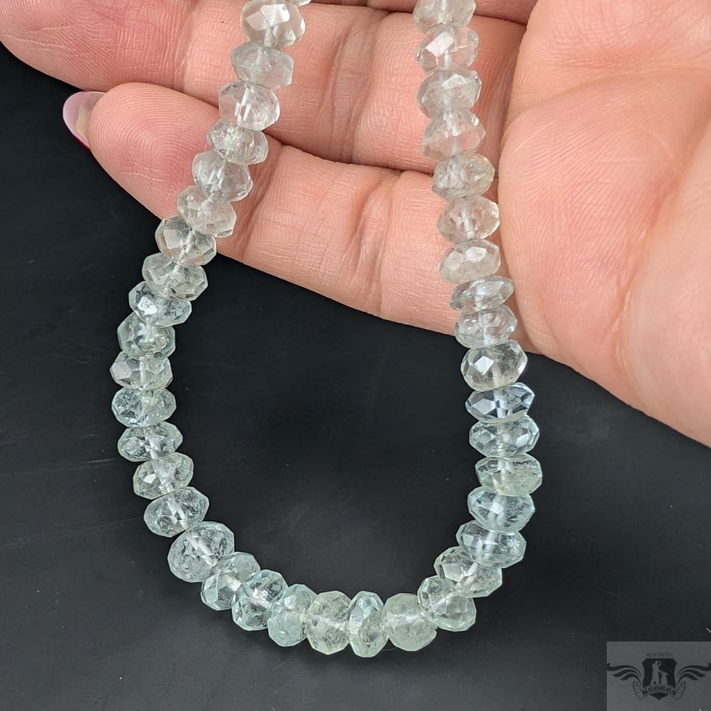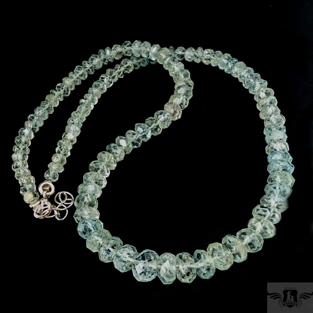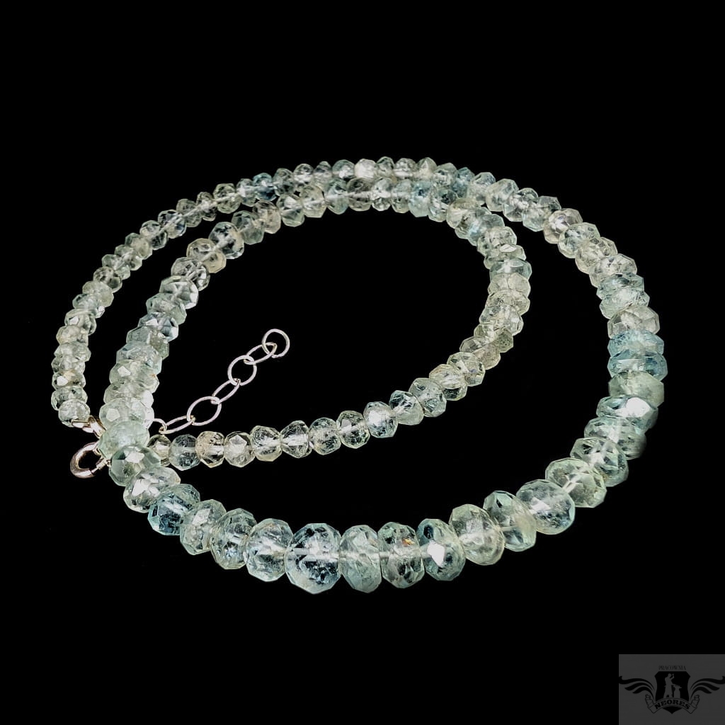 Okazały naszyjnik ze starannie wyselekcjonowanych, fasetowanych akwamarynów o ślicznym odcieni morskiej toni. Zapięcie srebro 925. Grubość 7 mm, długość naszyjnika 46 cm plus łańcuszek srebrny, co razem daje max 50 cm. Zapakowany w ozdobne pudełeczko.
