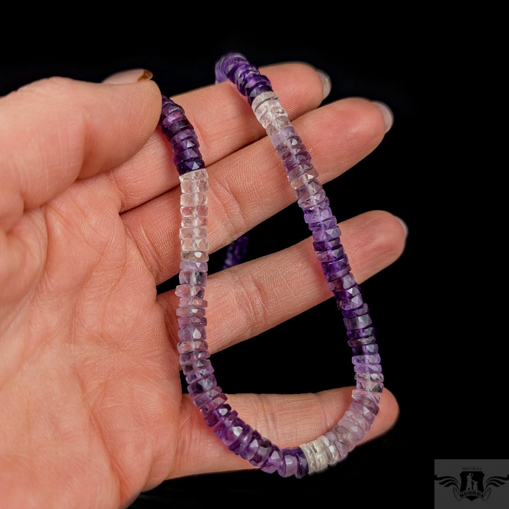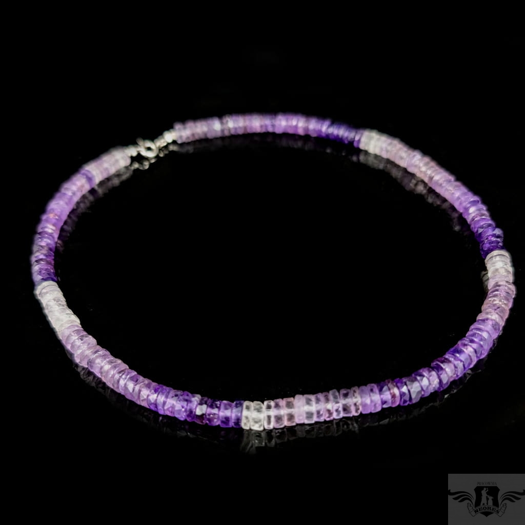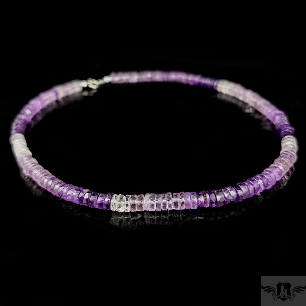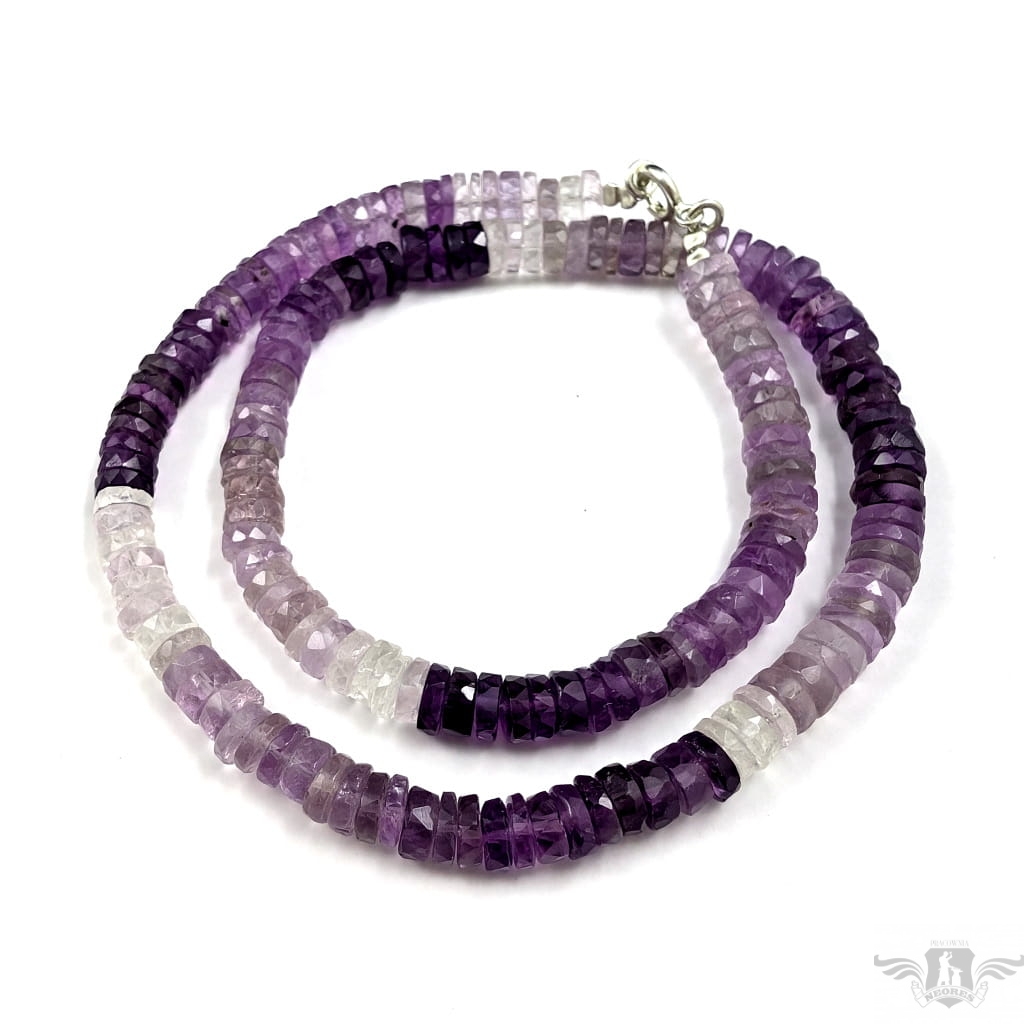 Naszyjnik z pięknych, fasetowanych ametystów w różnych odcieniach. Zapięcie srebro 925. Grubość 7 mm, długość naszyjnika 44 cm