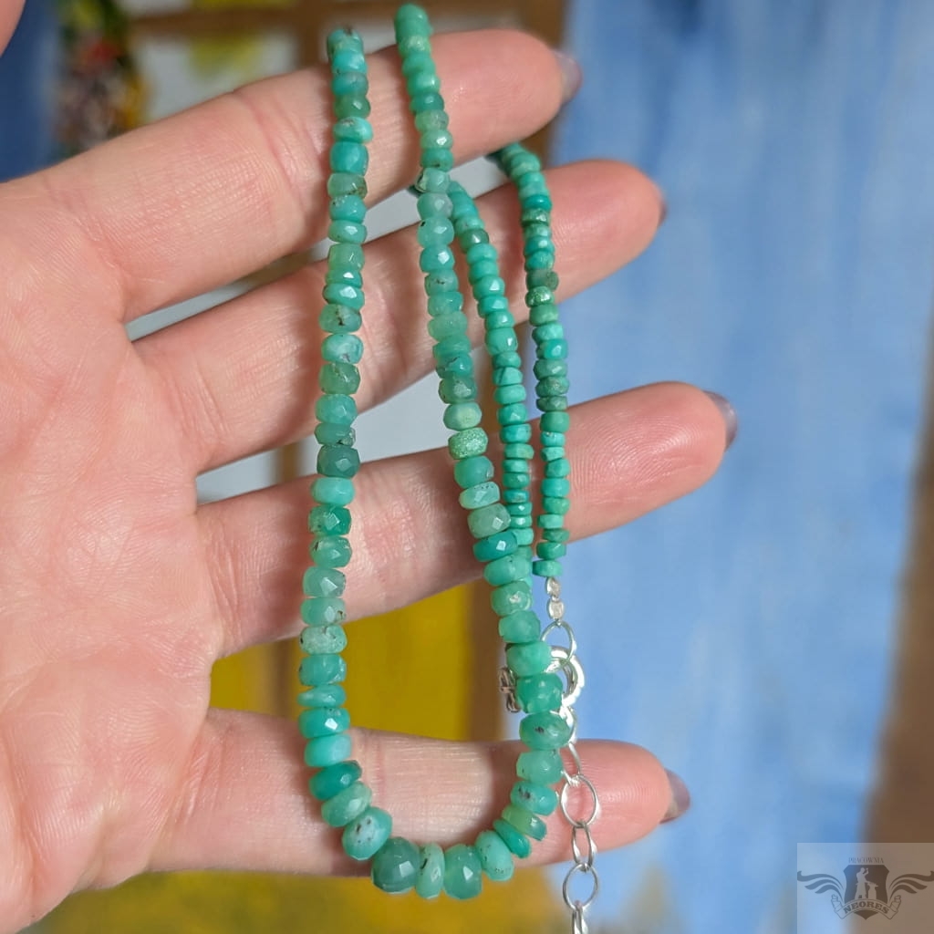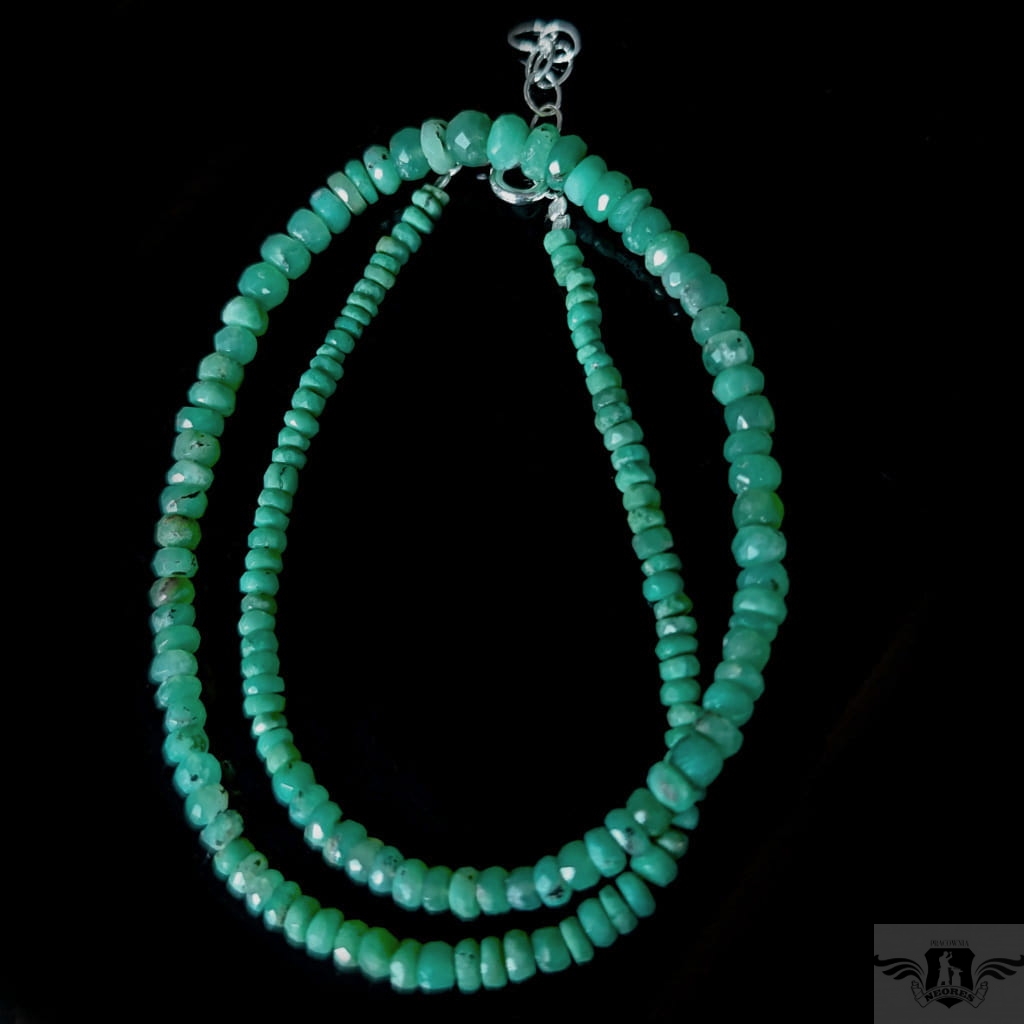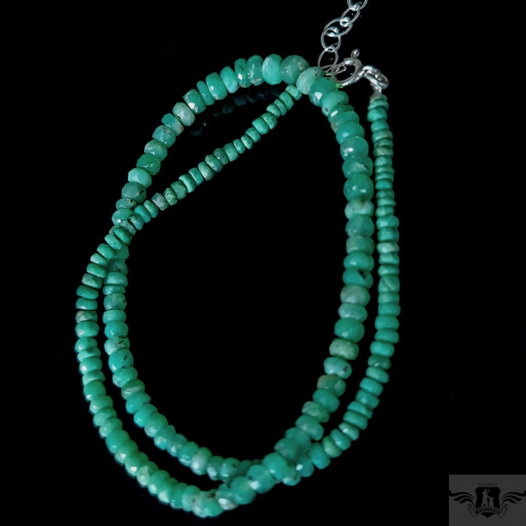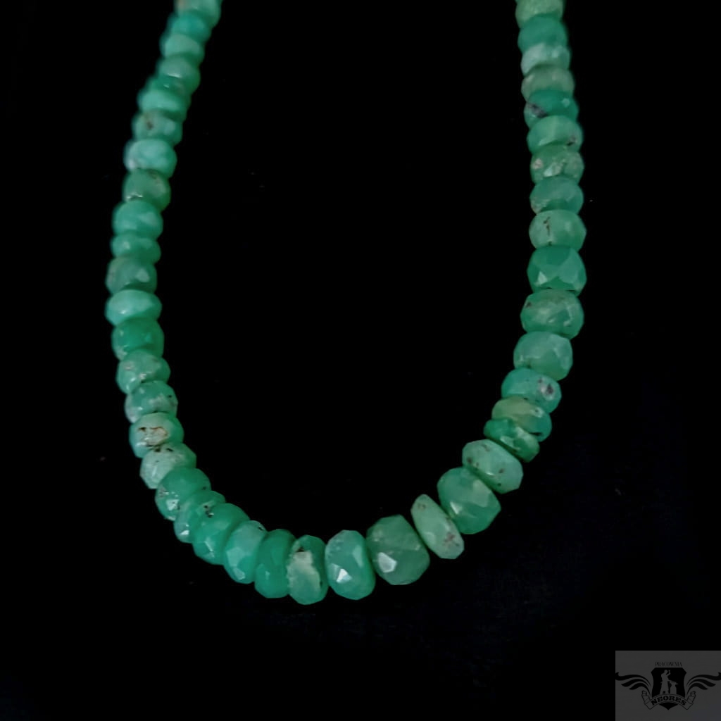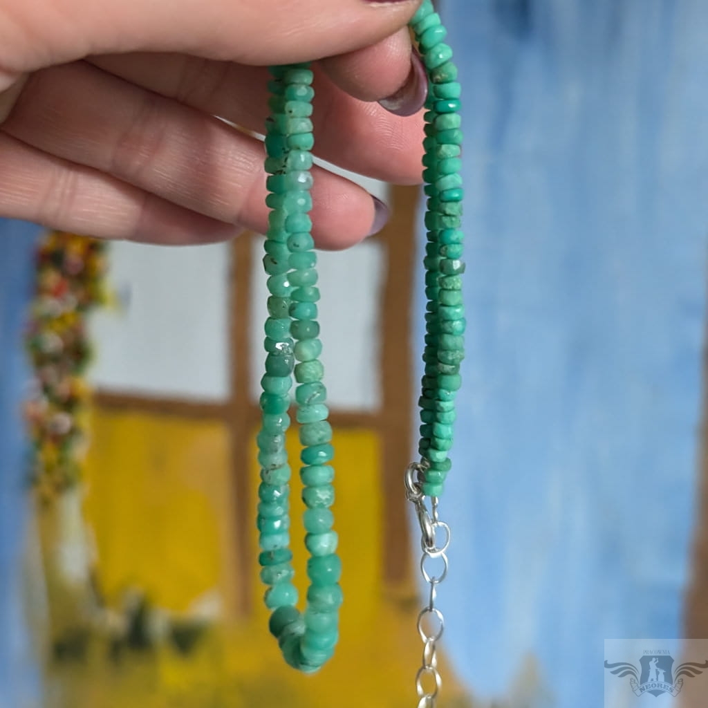 Naszyjnik ze starannie wyselekcjonowanych, fasetowanych chryzoprazów o ślicznym odcieniu zieleni. Zapięcie srebro 925. Grubość max 6 mm, min. 3 mm, długość naszyjnika 42 cm. Z łańcuszkiem max 46 cm.Naszyjniki wykonujemy sami. Zapakowany w ozdobne pudełeczko.