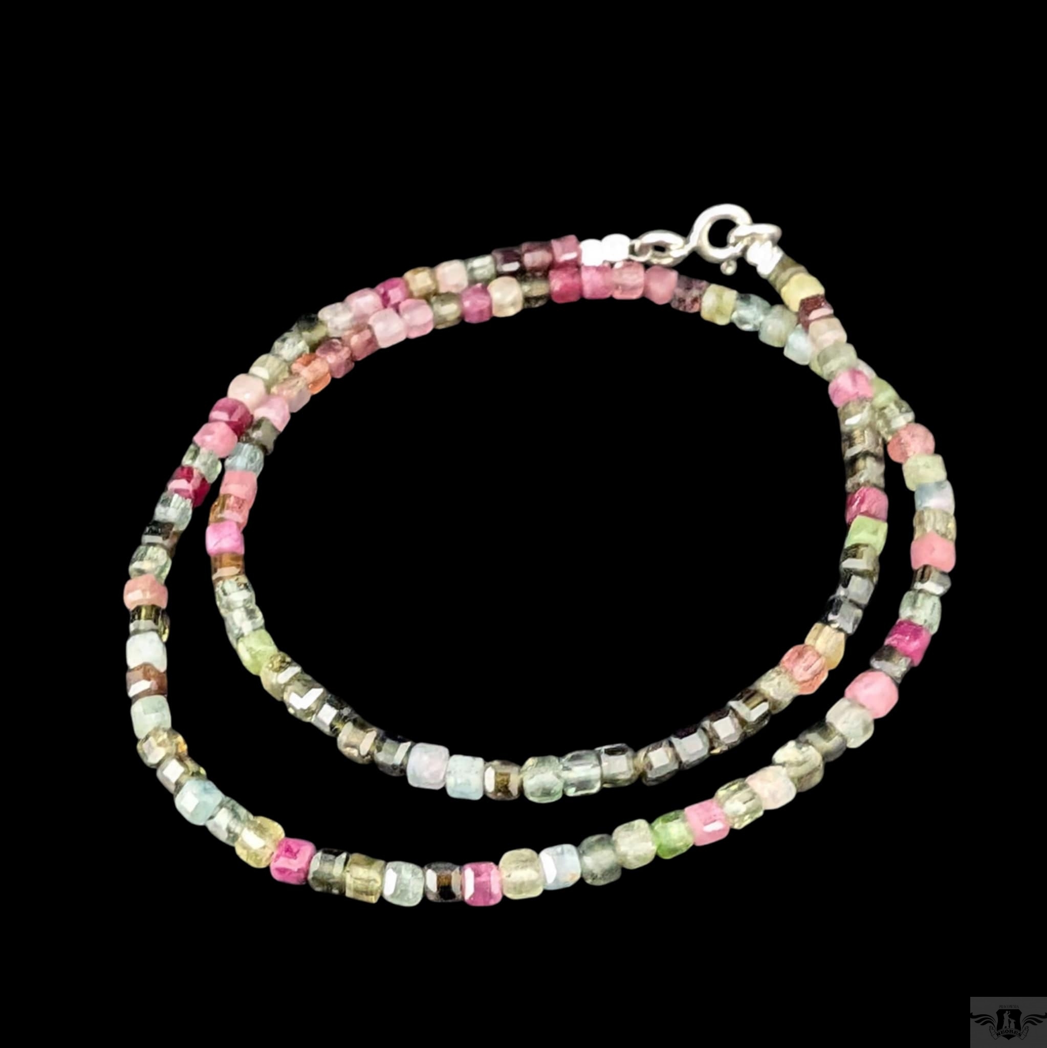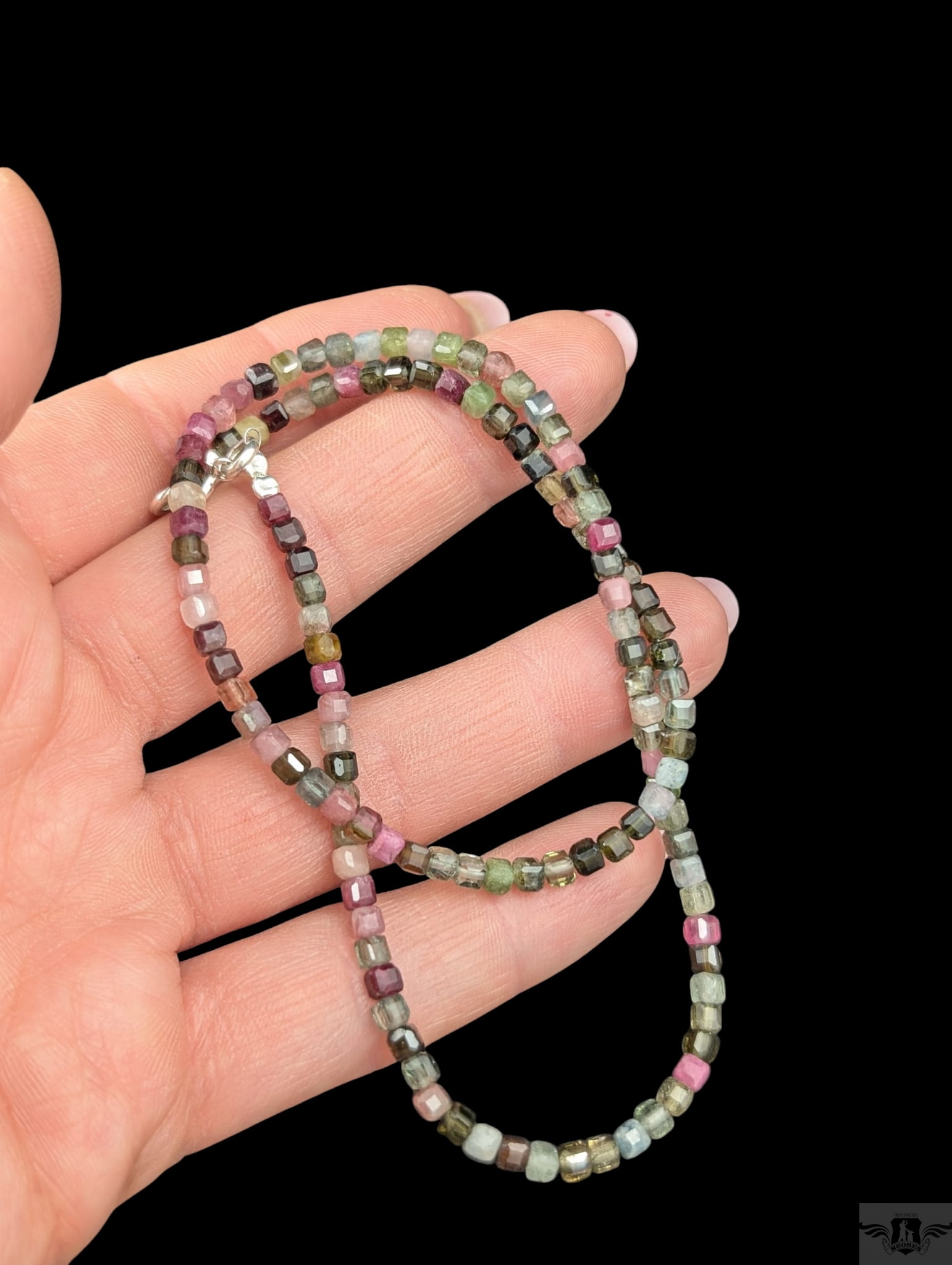 Naszyjnik z pięknych, fasetowanych turmalinów, kamienie pięknie połyskują. Piękny, wielobarwny set. Zapięcie srebro 925. Grubość mm, długość naszyjnika 41 cm. Idealnie komponuje się z lekkimi wisiorami z pracowni (do ok 5 g) . Zapakowany w ozdobne pudełeczko.