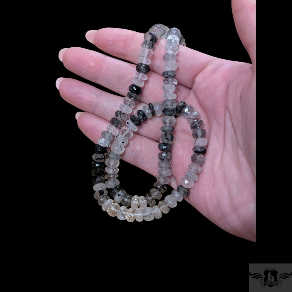 Naszyjnik wykonany ze starannie wyselekcjonowanych fasetowanych kwarców z czarnym turmalinem. Grubość 7 mm, długość 47 cm. Polecam, piękne kamienie. Naszyjniki wykonujemy sami.
