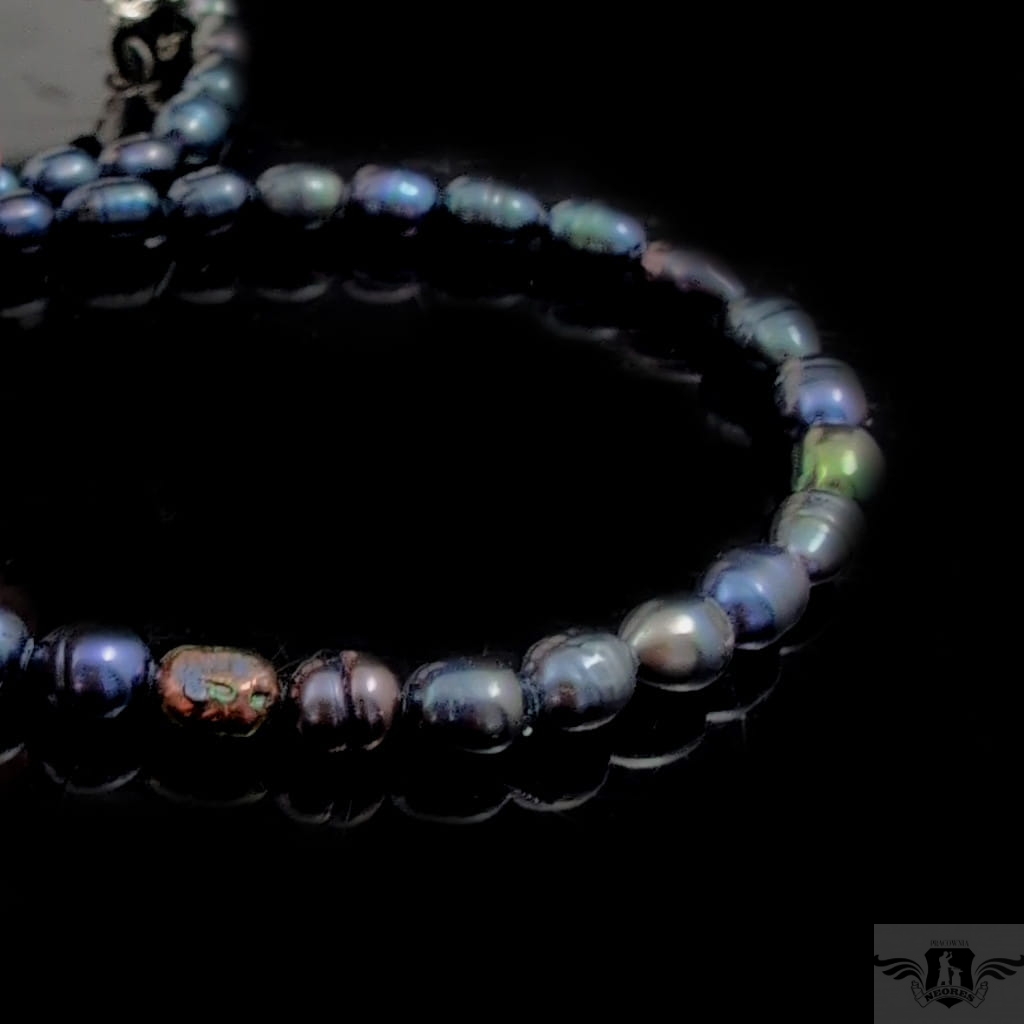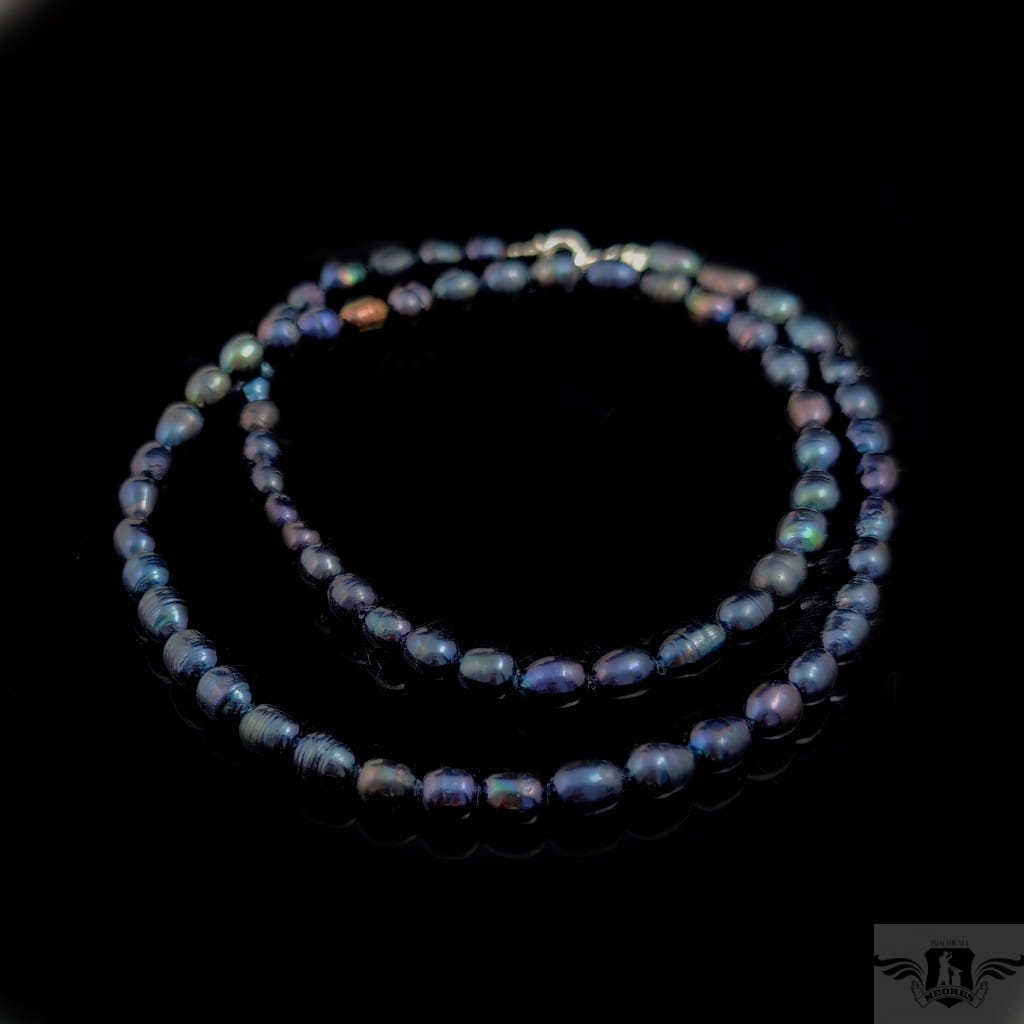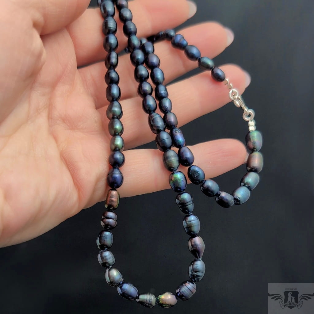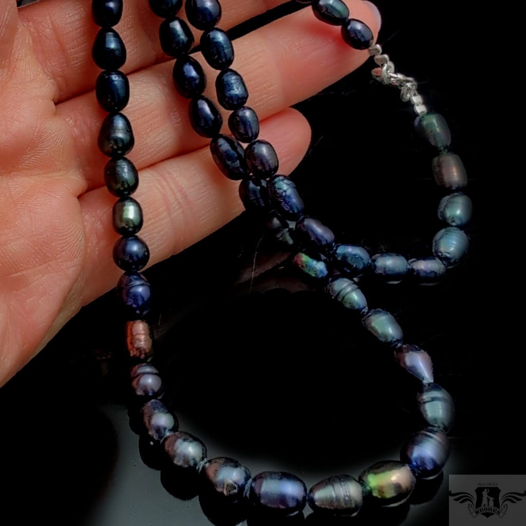 Naszyjnik z przepięknych słodkowodnych pereł. Kolor grafitowy z tęczową poświatą. Zapięcie srebro 925. Grubość 6 mm, długość 58 cm, polecam w komplecie z bransoletką.