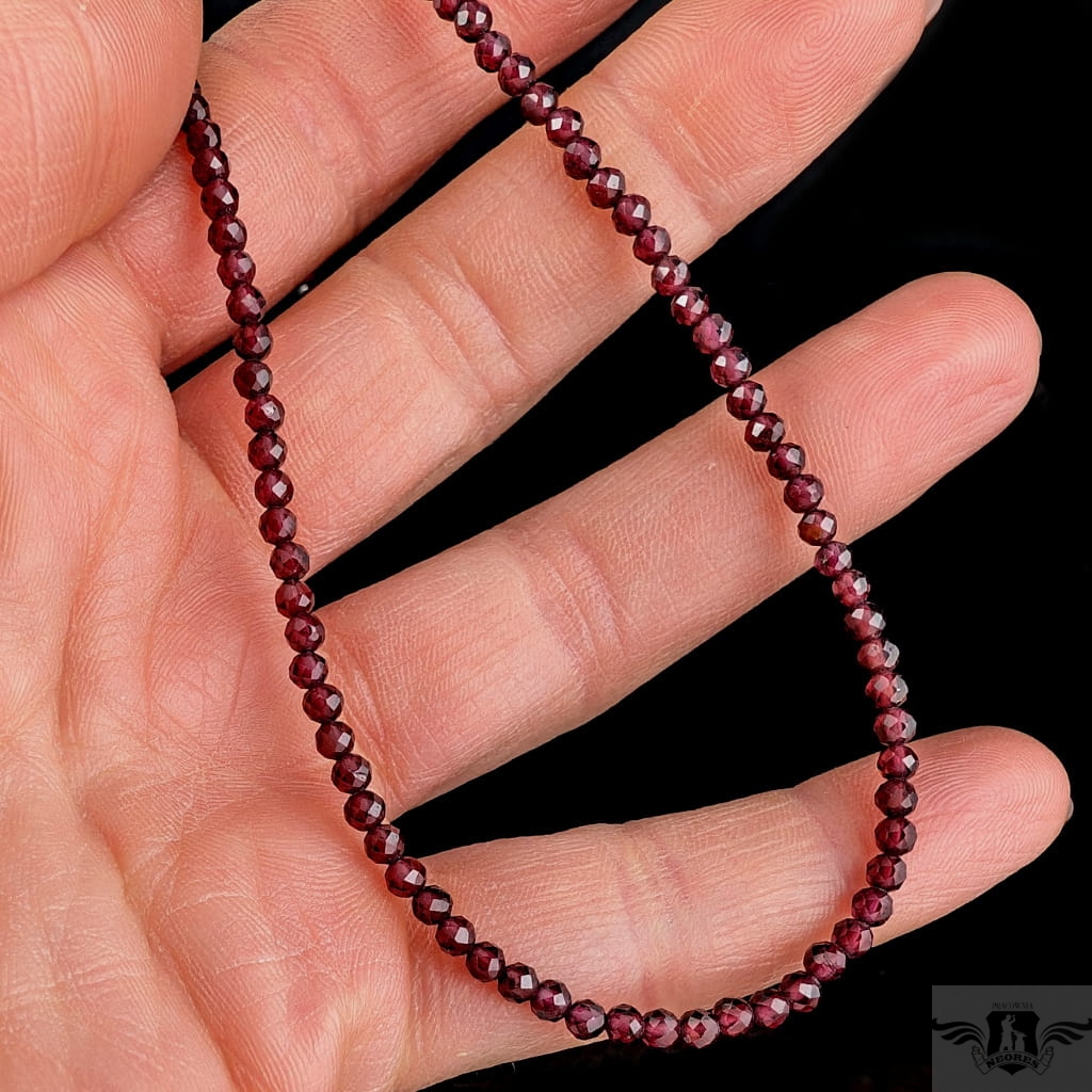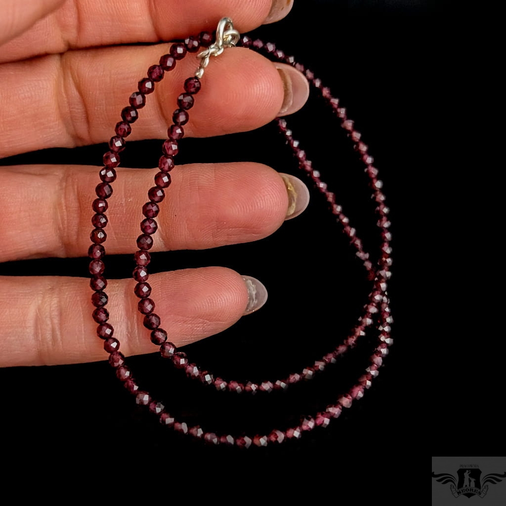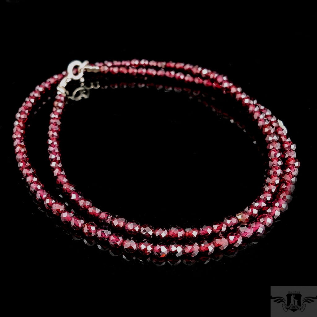 Naszyjnik z fasetowanych granatów, kamienie pięknie połyskują. Zapięcie srebro 925. Grubość 3 mm, długość naszyjnika 41 cm. Idealnie komponuje się z lekkimi wisiorami z pracowni (do ok 5 g) . Mogę dołożyć przedłużkę do naszyjnika w postaci łańcuszka srebrnego, któraa będzie miałą 5 cm. Zapakowany w ozdobne pudełeczko.