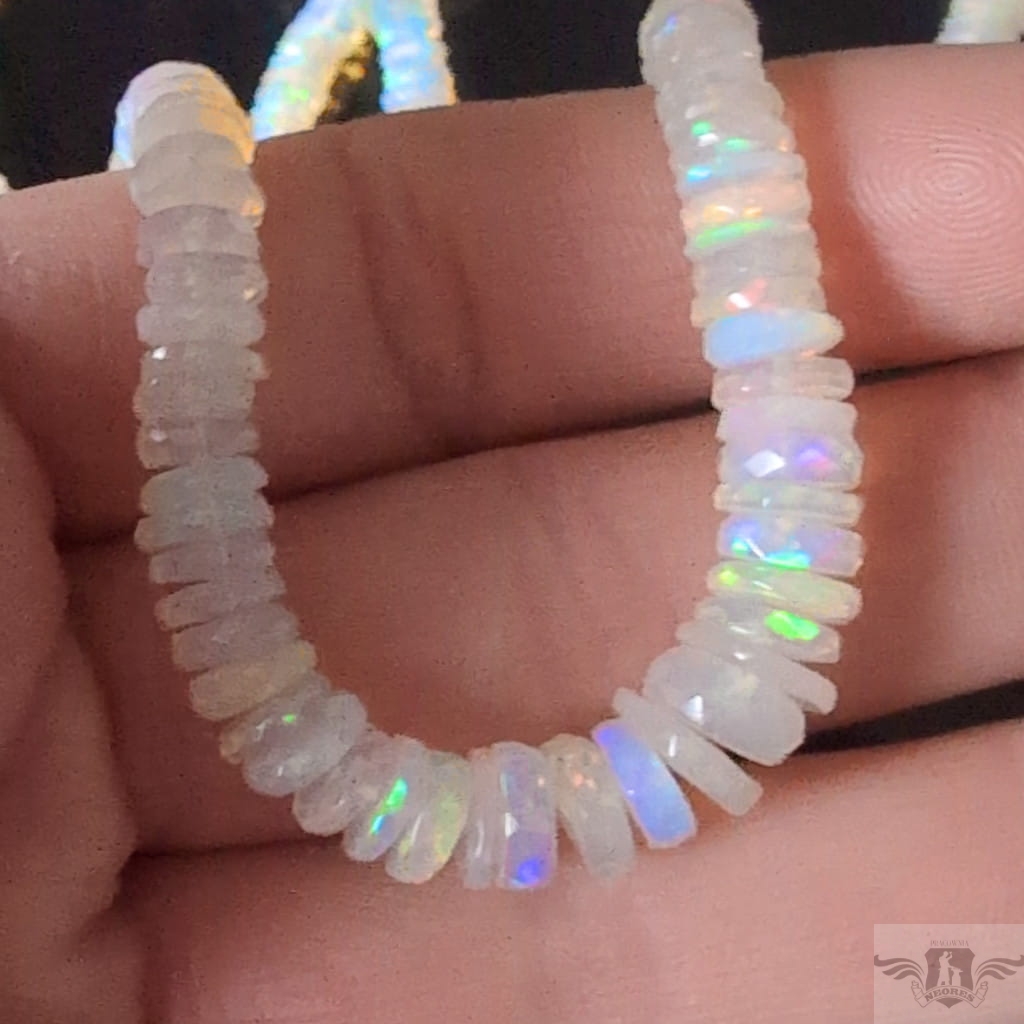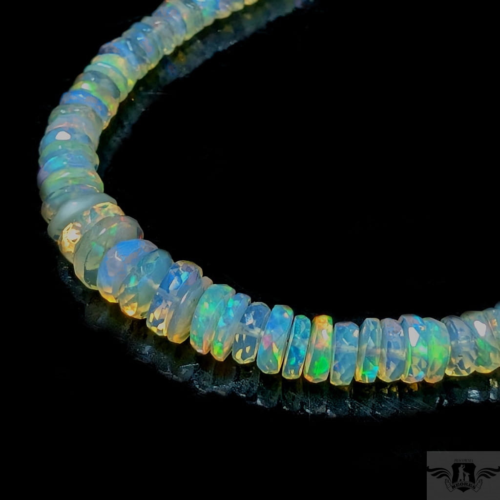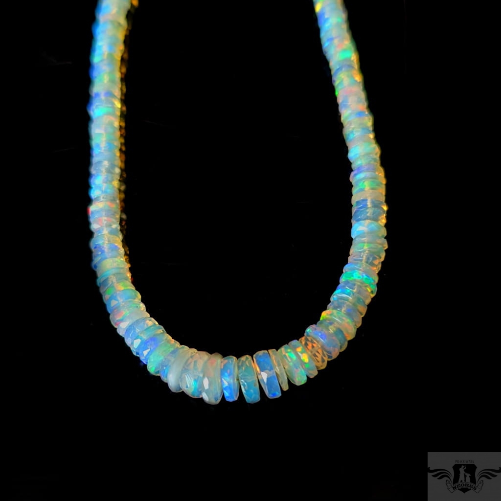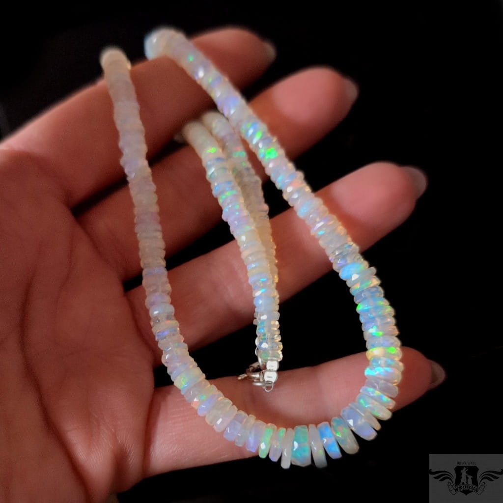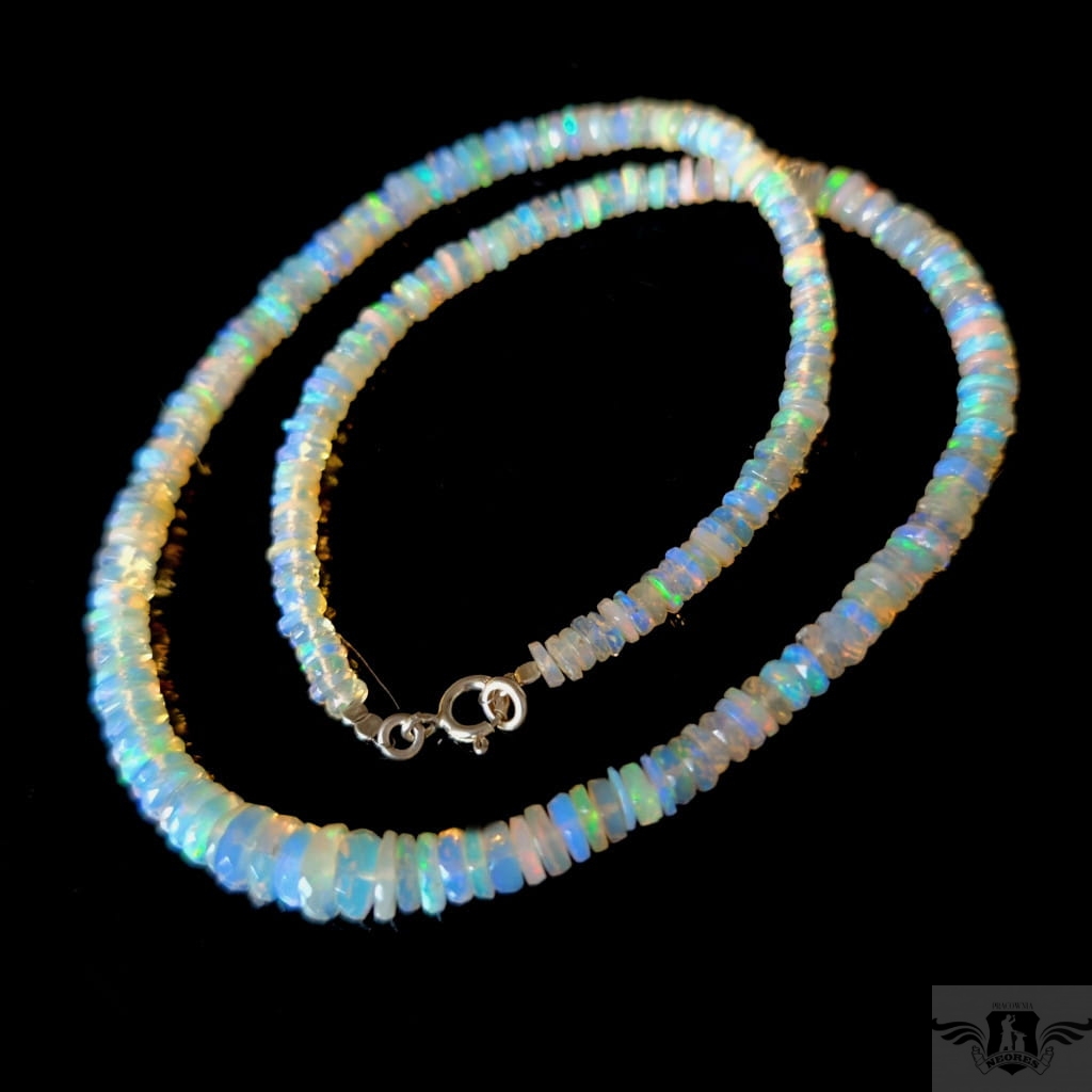 Zjawiskowy naszyjnik z przepięknych, starannie wyselekcjonowanych, wystopniowanych szlachetnych opali etiopskich. Kamienie pięknie połyskują, wspaniałą opalizacją. Zapięcie srebro 925. Grubość max 9 mm, długość naszyjnika 47 cm. Polecam, przepiekne kamienie, Zapakowany w ozdobne pudełeczko.