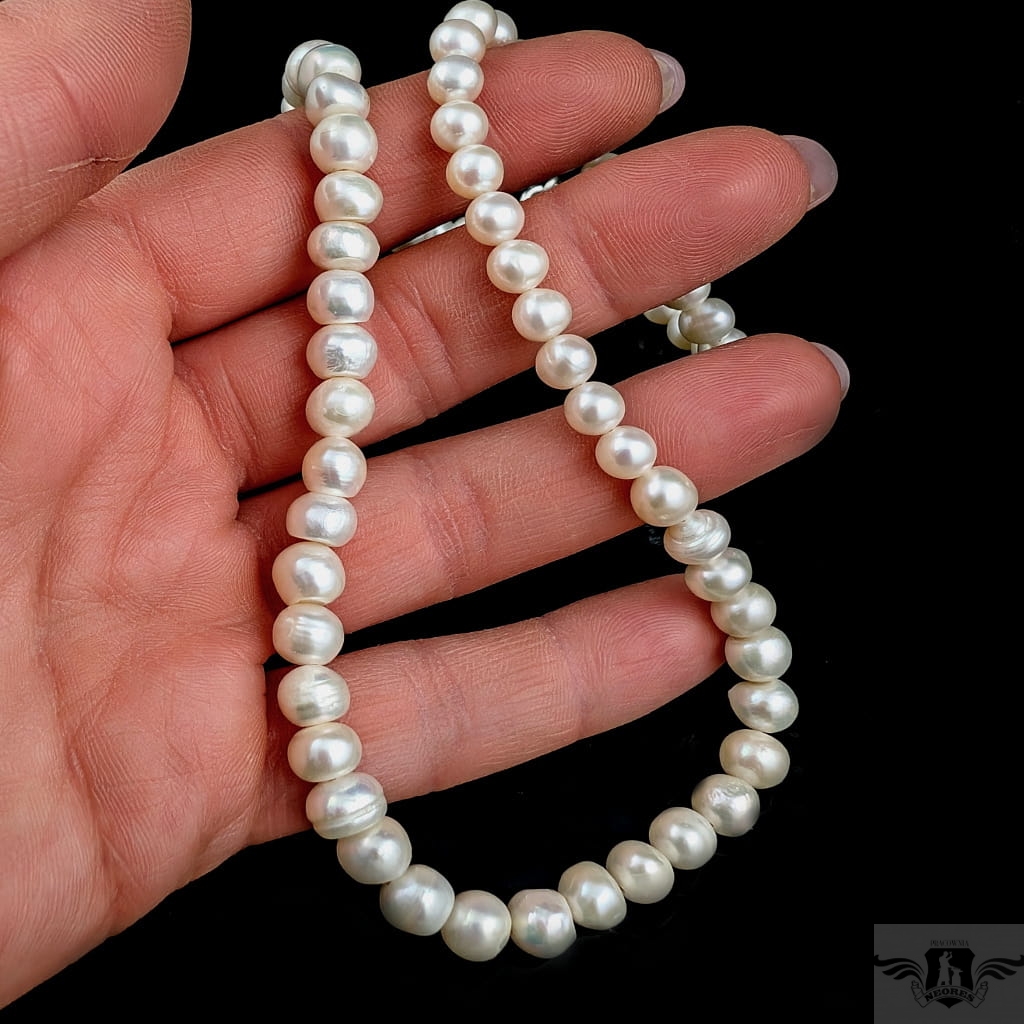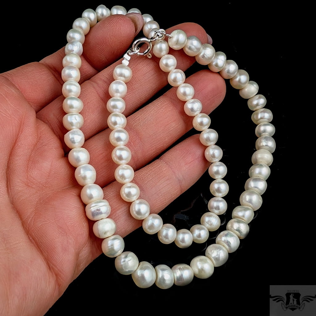 Elegancki, ponadczasowy naszyjnik z przepięknych słodkowodnych pereł, który idealnie skomponuje się z perłową biżuterią od Neores. Zapięcie srebro 925. Grubość 7mm, długość 45 cm.