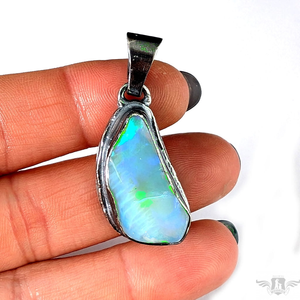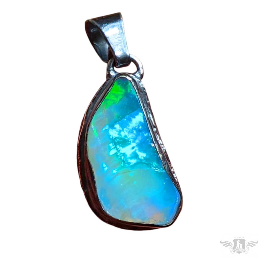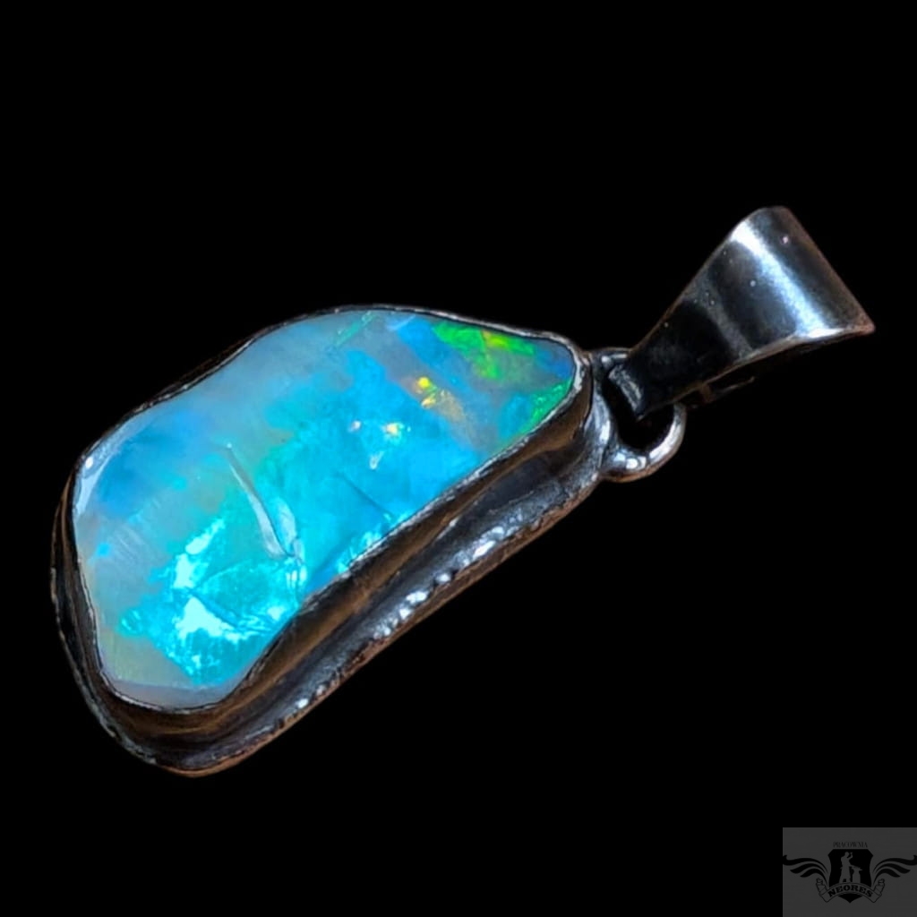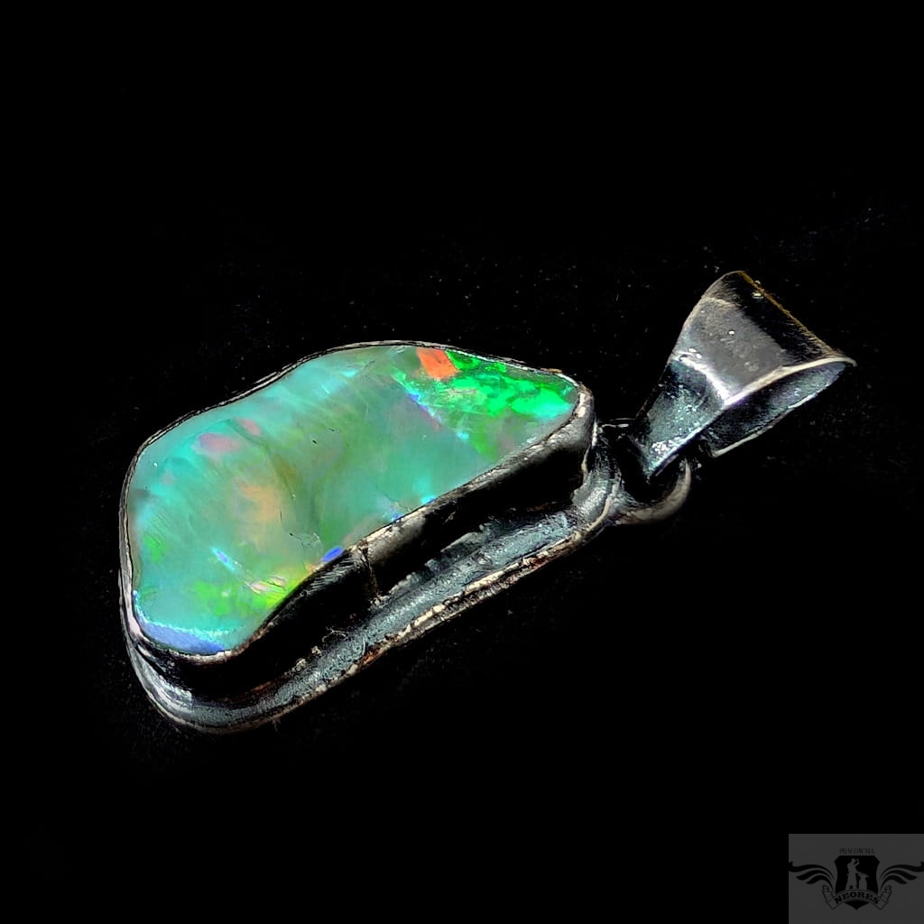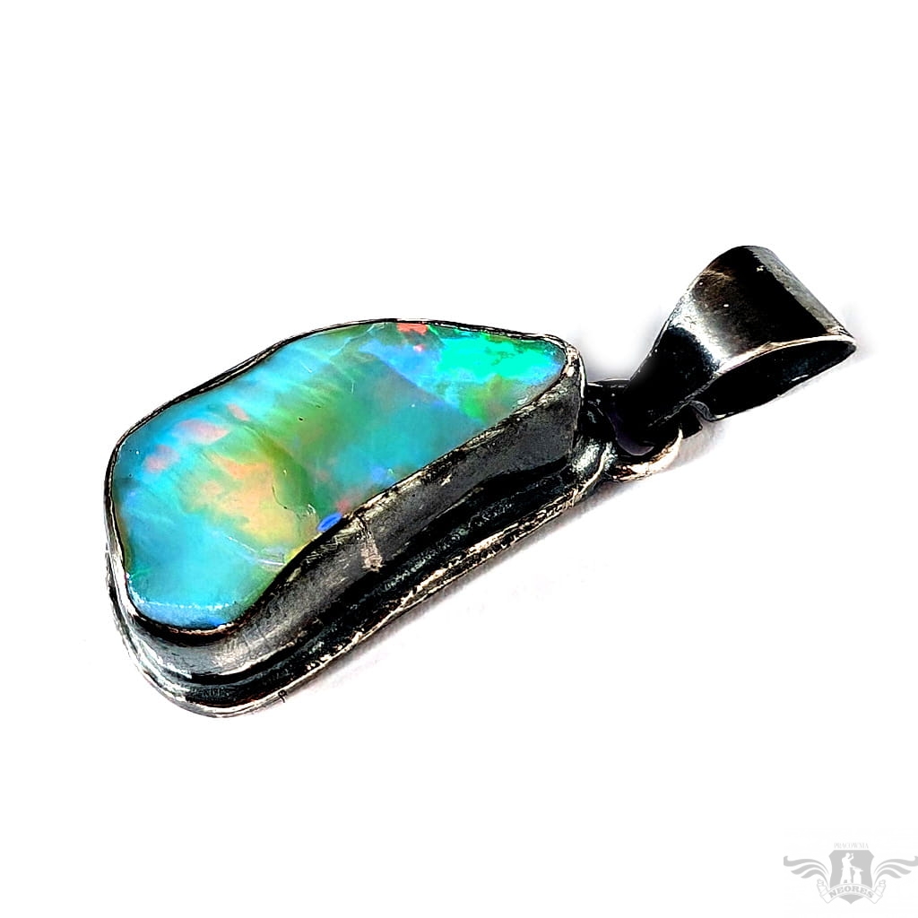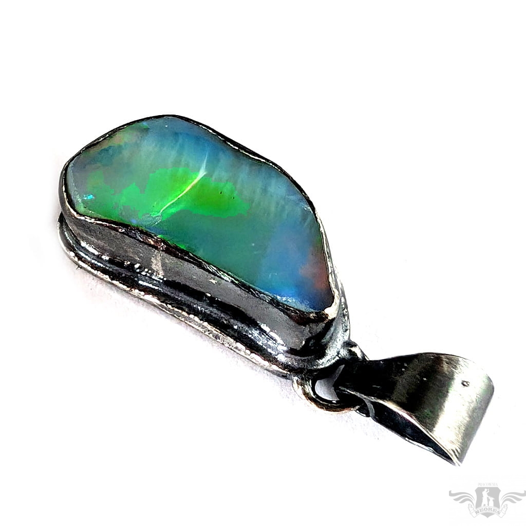Piękny wisiorek wykonany w całości z oksydowanego srebra oraz dużego, naturalnego opalu z Etiopii. Zjawiskowy okaz o przepięknej opalizacji skrytej pod surową taflą. Wymiary oprawy 27 x 15 mm, długość z krawatką 38mm. Waga 8,5 g. Wisiorek zostanie zapakowany w ozdobne pudełeczko