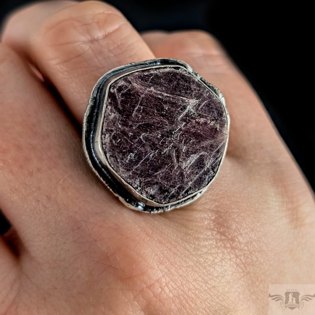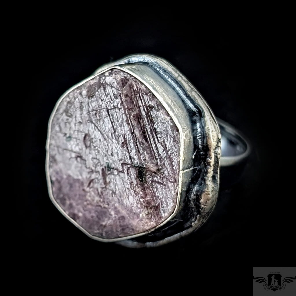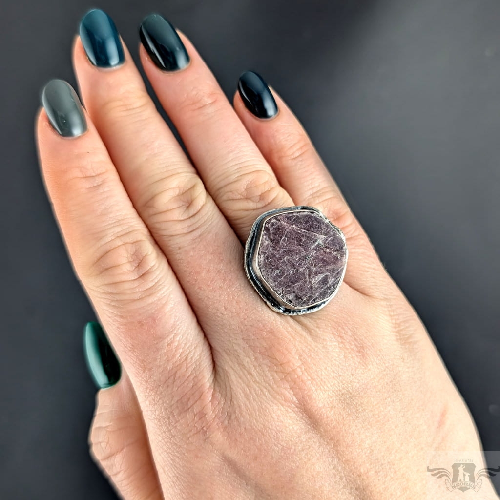 Piękny okaz naturalnego, surowego rubinu. Oprawa srebra próby 925, oksydowana i przecierana. Waga 18 gramów. Wymiary całej oprawy 27 x 26 mm. Rozmiar regulowany wszerokim zakresie, proszę napisać, na jakidopasować. Pierścień zostanie zapakowany w ozdobne pudełeczko.