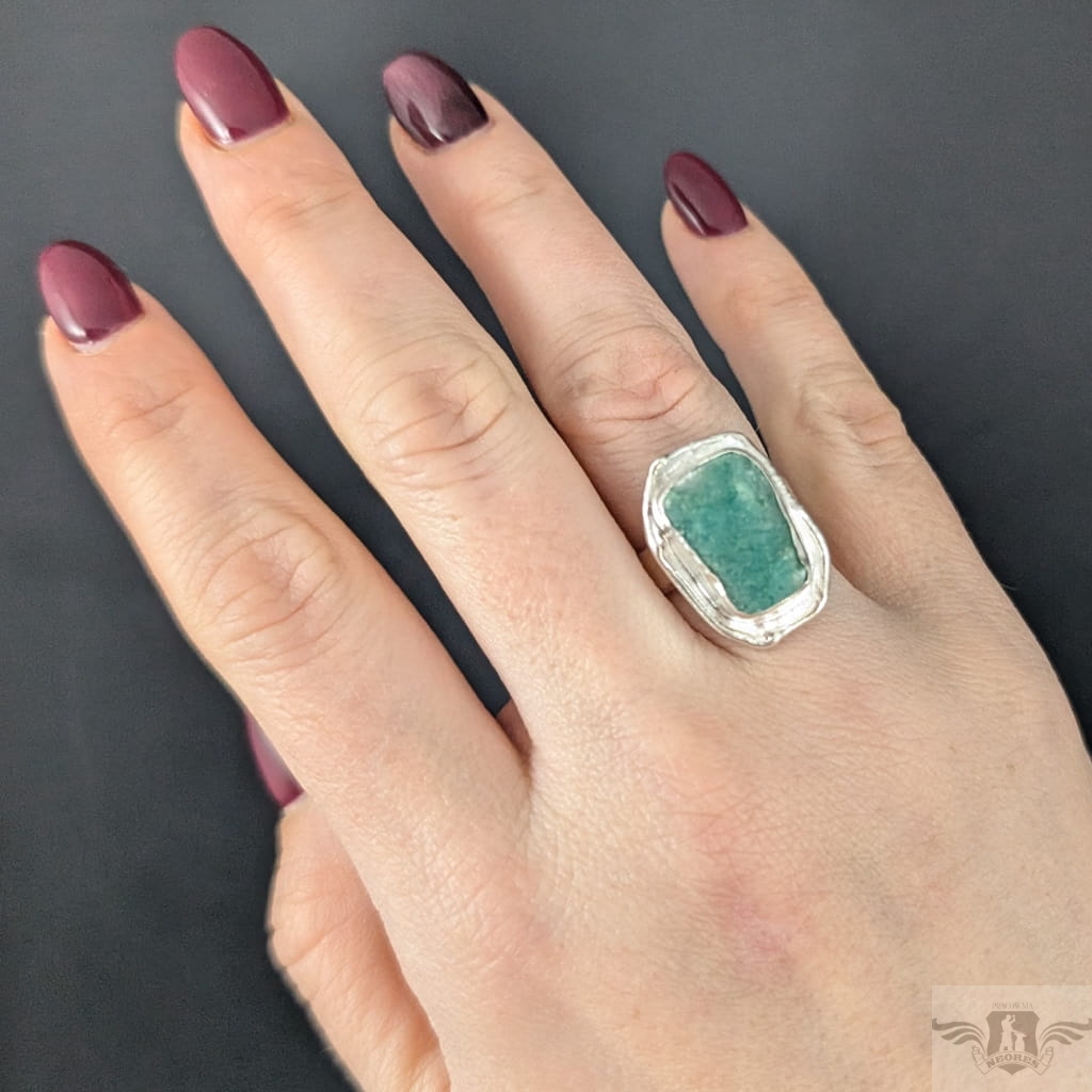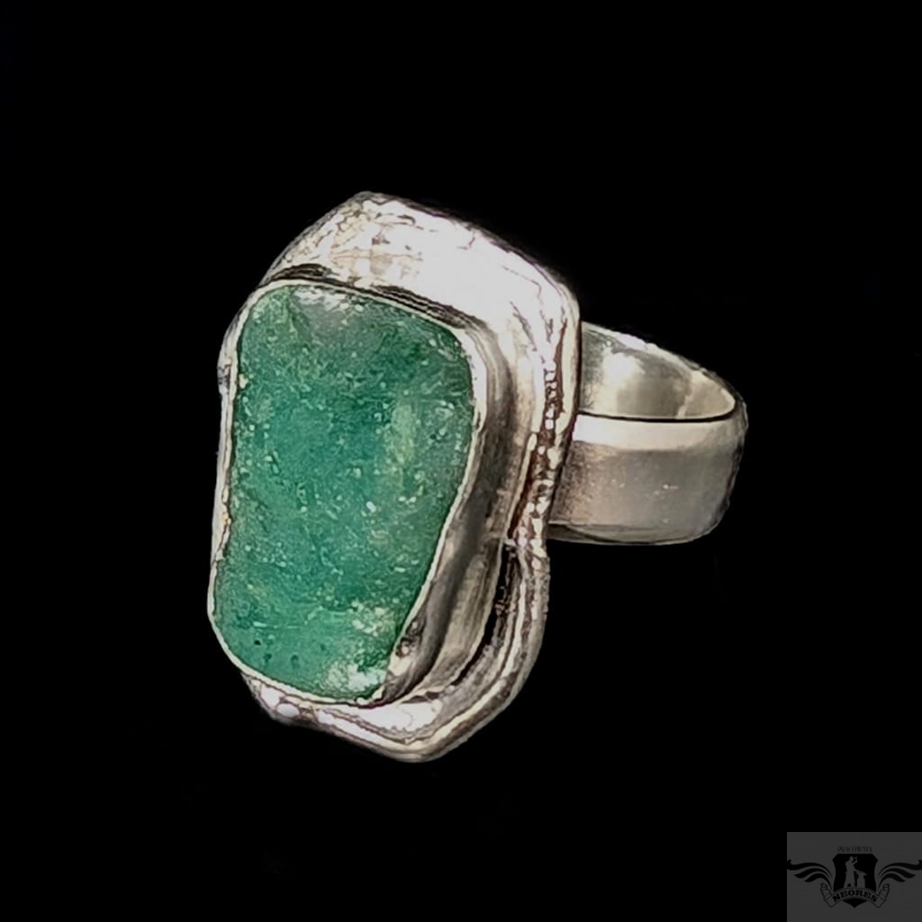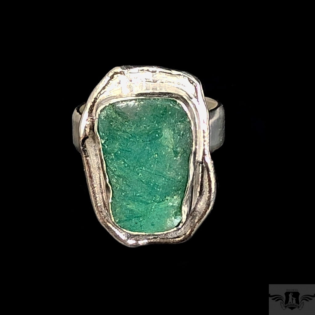 Pierścień wykonany ze srebra pr. 925 oraz pięknego szmaragdu o surowej tafli. 10,45 Ct. Regulowana obrączka 5 mm szerokości. Rozmiar jubilerski można dopasować w zakresie 9-25. Wymiary oprawy 22 x 16 mm. Waga 8,7 g. Pierścień zostanie zapakowany w ozdobne pudełeczko.