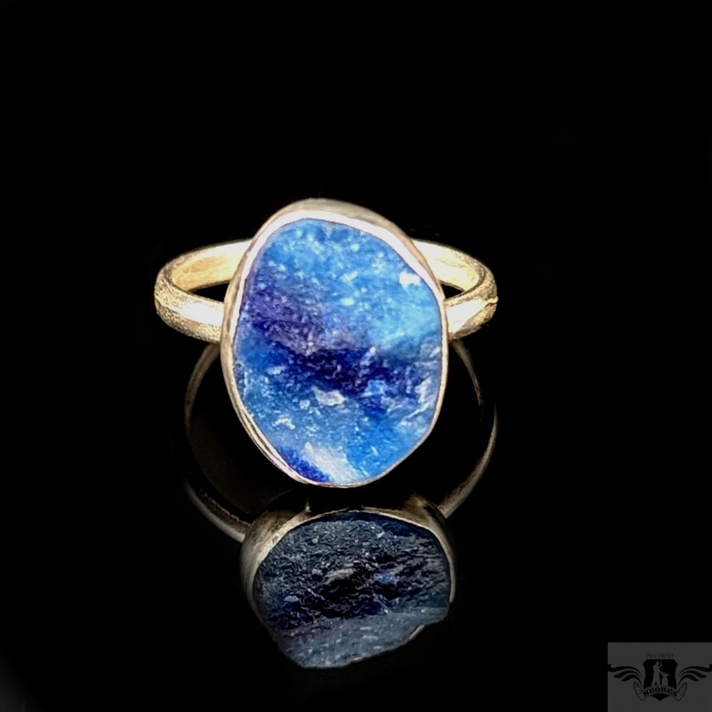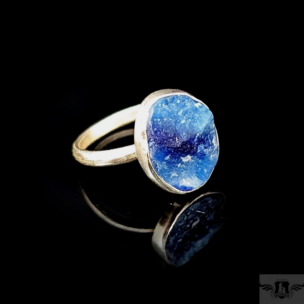 Surowy pierścień z naturalnym minerałem o naziwe afganit oprawionym w srebro próby 925. Wymiary oprawy 14 x 12 mm, rozmiar jbilerski 11. Waga 2,8 g. Zostanie zapokowany w ozdobne pudełeczko.